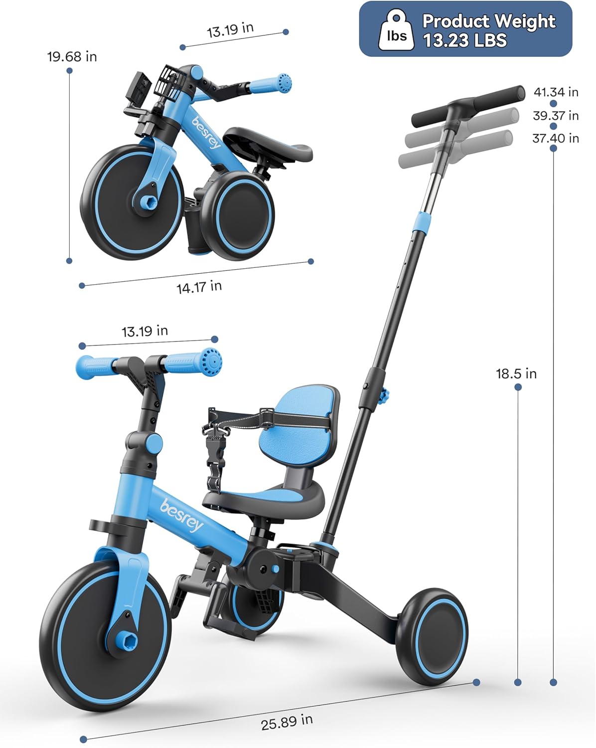 Modalità 4 in 1: si regola facilmente dalle modalità piegatura, equilibrio, spinta e triciclo per adattarsi a ogni fase della crescita del tuo bambino. La sicurezza al centro: lo schienale rimovibile e la cintura a tre punti proteggono da cadute e scivolamenti. Il robusto telaio in acciaio al carbonio e le ruote chiuse garantiscono maggiore sicurezza e lunga durata. Funzioni regolabili: la maniglia di spinta può essere estesa fino a 104 cm e si adatta quindi a genitori di tutte le taglie. Il manubrio e la sella sono regolabili, garantendo una vestibilità comoda man mano che il bambino cresce. Facile da montare: assemblaggio semplice senza strumenti complicati. Sono incluse istruzioni chiare in modo che anche gli utenti alle prime armi possano configurarlo rapidamente e facilmente. Giocattolo ideale: questa bici senza pedali è perfetta per ragazzi e ragazze da 1 a 3 anni e offre divertimento duraturo e supporto per lo sviluppo iniziale.