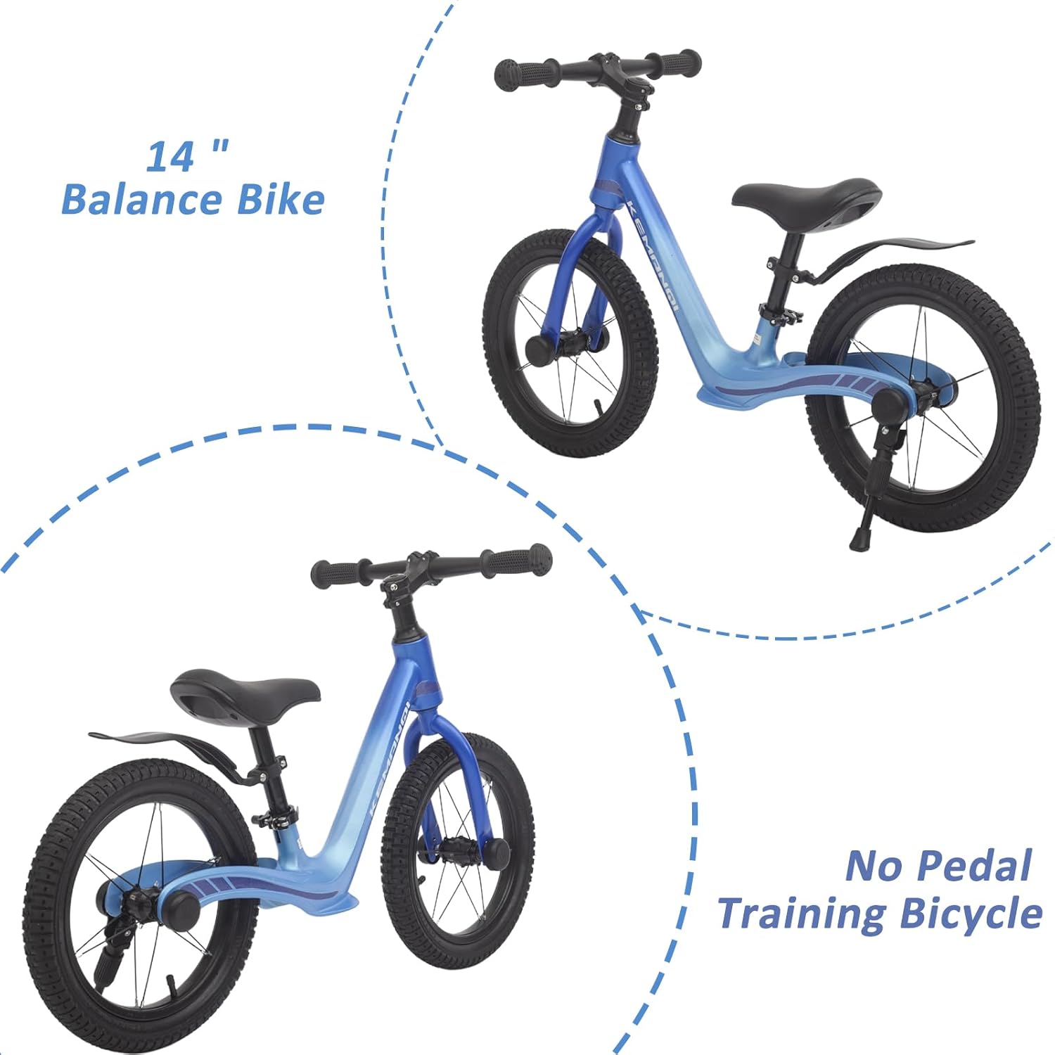 [Telaio leggero] Questa girante da 14 pollici presenta un telaio in lega di magnesio con bordi lisci e pochi punti di saldatura, che è caratterizzata da un'eccellente durata e peso ridotto, consentendo ai bambini una facile maneggevolezza durante la guida. [Parcheggiare in qualsiasi momento] Dotata di un supporto, la bicicletta può essere parcheggiata in posizione verticale senza la necessità di appoggiarla a pareti, ringhiere o altri oggetti. Quindi non è necessario cercare un punto di appoggio durante il parcheggio e la bicicletta non può ribaltarsi e graffiare la vernice. [Cresce con il bambino] Grazie alla regolazione dell'altezza del sedile, la ruota può essere regolata in base alla crescita del bambino ed è adatta per bambini dai 3 ai 6 anni. Il morbido coprisedile garantisce una piacevole esperienza di guida per il bambino. [Protezione con parafango] Il parafango in dotazione offre una protezione pratica. Il parafango impedisce lo spruzzo di fango e acqua. La superficie del pneumatico in gomma antiscivolo affronta facilmente superfici difficili come strade sterrate e superfici erbose. [Allenamento del senso dell'equilibrio] Una bicicletta senza pedali aiuta i bambini ad allenare il loro senso di equilibrio e coordinazione e aumentare la loro fiducia in se stessi. È un ottimo modo per iniziare i bambini a scoprire il divertimento del ciclismo e una buona scelta come regalo di compleanno per bambini dai 3 ai 6 anni.