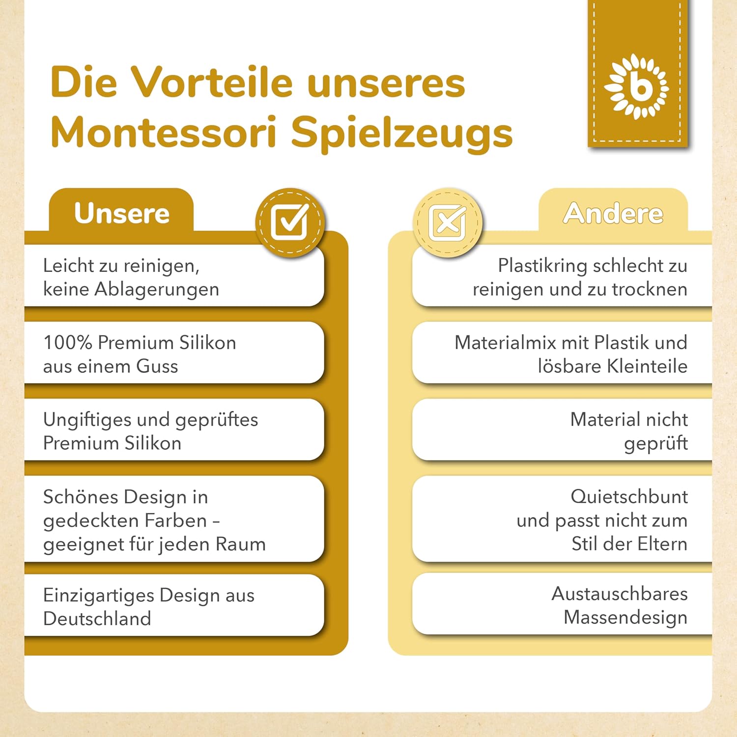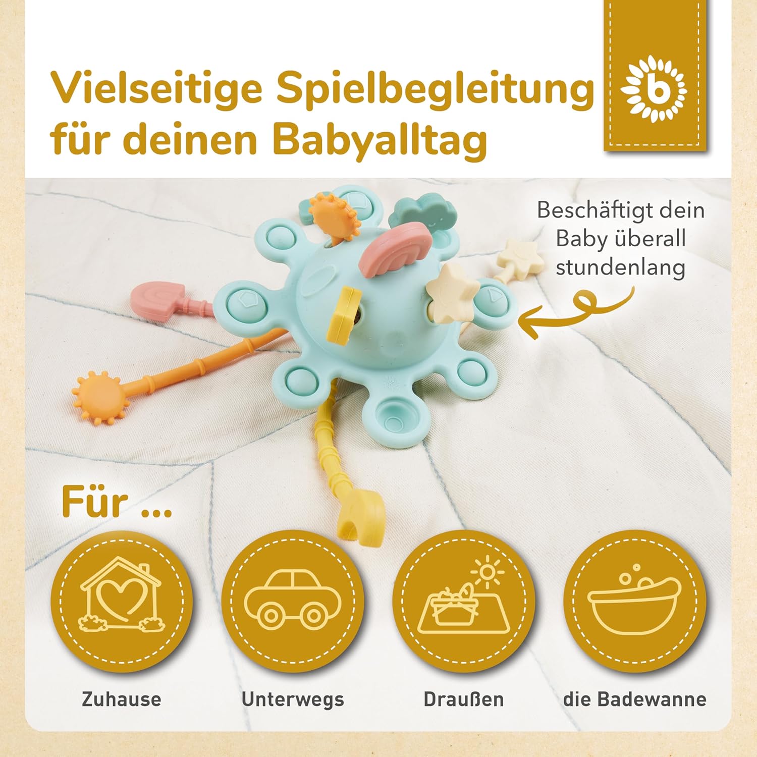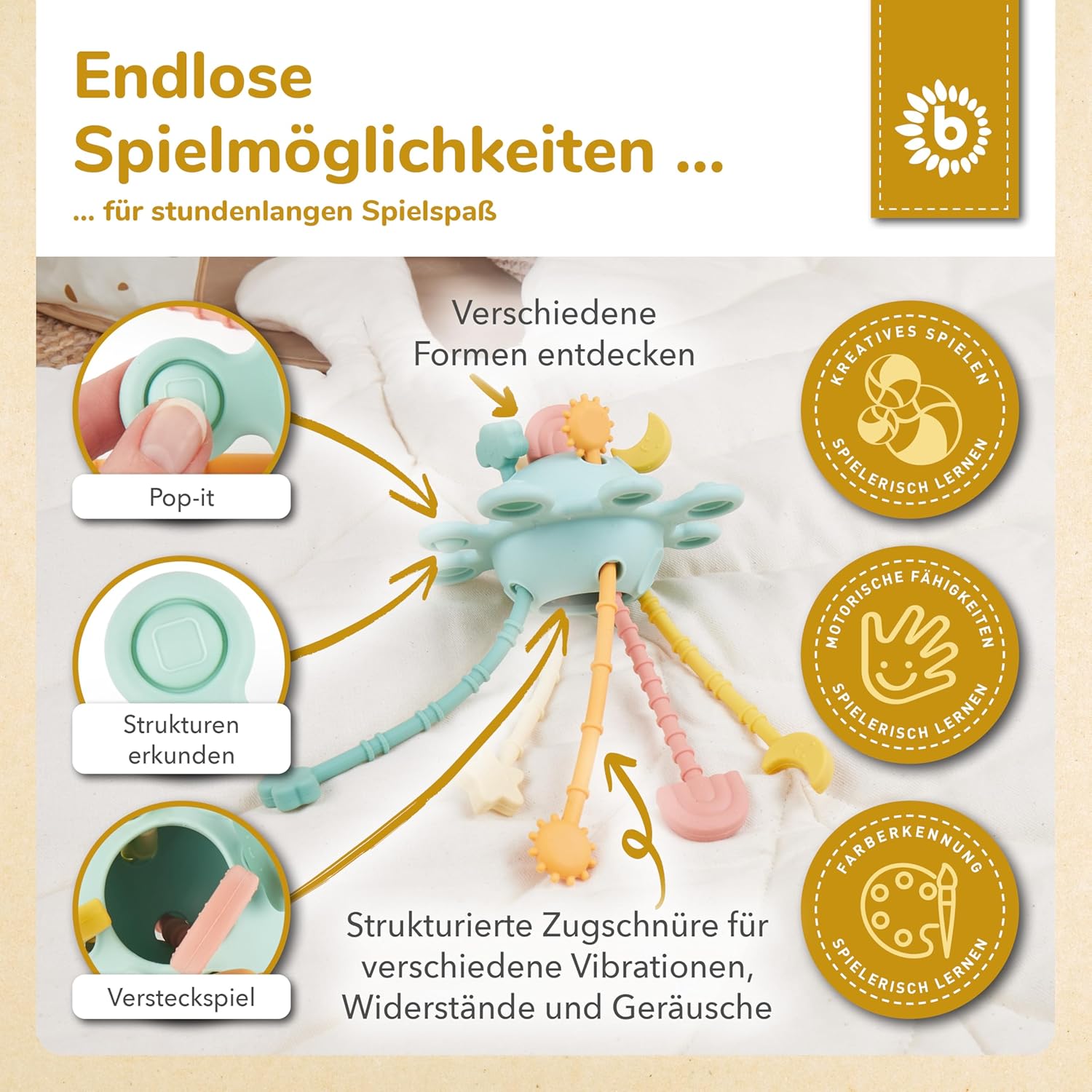 PEDAGOGICAMENTE PREZIOSO: Scopri l'apprendimento giocoso nell'universo! Il giocattolo ispirato a Montessori incoraggia le capacità motorie e la coordinazione occhio-mano, stimolando la curiosità del tuo bambino e incoraggiando il suo naturale desiderio di imparare. DESIGN GIOCOSO: colorato e dal design semplice: il nostro giocattolo planetario colpisce per i suoi toni tenui e le forme diverse. Nasconde il sole, la luna e le stelle al suo interno per un'affascinante avventura da esplorare per le piccole mani! SILICONE ALIMENTARE AL 100%: La sicurezza viene prima di tutto! I nostri giocattoli offrono un gioco senza preoccupazioni con una qualità premium. Senza BPA e ftalati per un'esplorazione sicura e un divertimento illimitato. CURA FACILE: la pulizia diventa facile! Con un piccolo sforzo, solo acqua e sapone neutro, il nostro giocattolo sarà di nuovo pronto all'uso in pochissimo tempo. Ciò lascia più tempo per momenti di gioco spensierati e meno stress durante la pulizia! AMBITO DI CONSEGNA: Un giocattolo, infinite possibilità con una varietà di texture, lacci e campi Pop-it. 1x pianeta di attività in silicone; Colore: eucalipto/vibrazioni tropicali; Materiale: silicone; Dimensioni ca. 13,5x13,5x21 centimetri