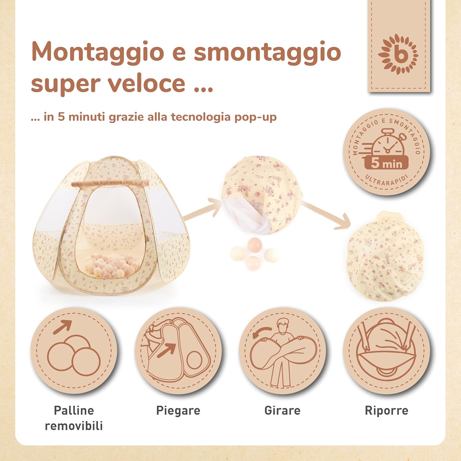 Incuriosito da questa tenda da gioco per bambini, commercializzata dal marchio BIECO, l’ho subito ordinata per testarne la qualità. Spedizione Amazon velocissima come sempre, imballaggio ottimo e oggetto consegnato il giorno successivo all’ordine. Questa graziosa tenda da gioco per interni è rapidamente diventata una delle nostre aggiunte preferite in casa, creando uno spazio accogliente e creativo dove i miei bambini possono divertirsi e scoprire nuove avventure. Una delle prime cose che mi ha colpito è stato il ???????????????????????? della tenda. Il motivo a pois aggiunge un tocco giocoso mentre le delicate tonalità beige e caramello si integrano con qualsiasi arredamento. La sua praticità pop-up la rende estremamente ???????????????????????????????? ???????? ???????????????????????????? ???? ????????????????????????????????, un grande vantaggio per noi genitori sempre impegnati. È leggera e maneggevole, permettendomi di spostarla facilmente da una stanza all'altra o di riporla con semplicità quando non è in uso. ????✨???? Realizzata in poliestere resistente, la tenda Bieco ha dimostrato di resistere egregiamente all'usura tipica del gioco vivace dei bambini, anche dopo tre mesi dall'installazione. Questo ???????????????????????????????????? non solo è progettato per affrontare le sfide quotidiane di un ambiente ludico, ma offre anche una sensazione di morbidezza al tatto, rendendo la tenda un luogo accogliente e confortevole dove i bambini possono rilassarsi e divertirsi. Naturalmente, la base o il ???????????????????????????????????? ???????????????????? ???????????????????? è costituito da un sottile strato di poliestere, il che significa che, una volta montata, è consigliabile arricchirla con tappetini morbidi o tanti cuscini. Questa aggiunta non solo migliora il comfort, ma trasforma la tenda in un accogliente rifugio dove i nostri bambini possono giocare, leggere o semplicemente rilassarsi mentre sfogliano un libro illustrato. La tenda offre ampio spazio ai miei bambini per infilarsi dentro insieme ai loro giocattoli o libri creando un accogliente angolo lettura. Per quanto riguarda le ????????????????????????????????????????, la base ha un diametro di 105 cm, mentre l’altezza di 125 cm è ideale sia per i più piccoli che per i bambini più grandi, permettendo loro di sedersi o sdraiarsi comodamente all'interno. Inoltre, il design aperto garantisce che la tenda non risulti angusta, pur offrendo un piacevole senso di privacy per i più piccoli. ???? Un altro vantaggio significativo è la ????????????????????????????????' ???????? ????????????????????????????????????????????????. Non c'è bisogno di preoccuparsi eccessivamente per eventuali macchie o sporco; infatti, basta una semplice passata con un panno umido per mantenerla pulita e in ottime condizioni. Questo aspetto pratico è fondamentale per noi genitori, poiché consente di dedicare più tempo ai momenti di gioco e meno alle pulizie. Ciò che amo di più di questa tenda è il modo in cui ???????????????????????????????????????? ???????? ???????????????????? ????????????????????????????????????????. I miei figli l'hanno trasformata in tutto, da una nave pirata a un castello magico. Stimola la loro creatività e offre loro uno spazio per impegnarsi in giochi di ruolo, il che è fondamentale per il loro sviluppo.