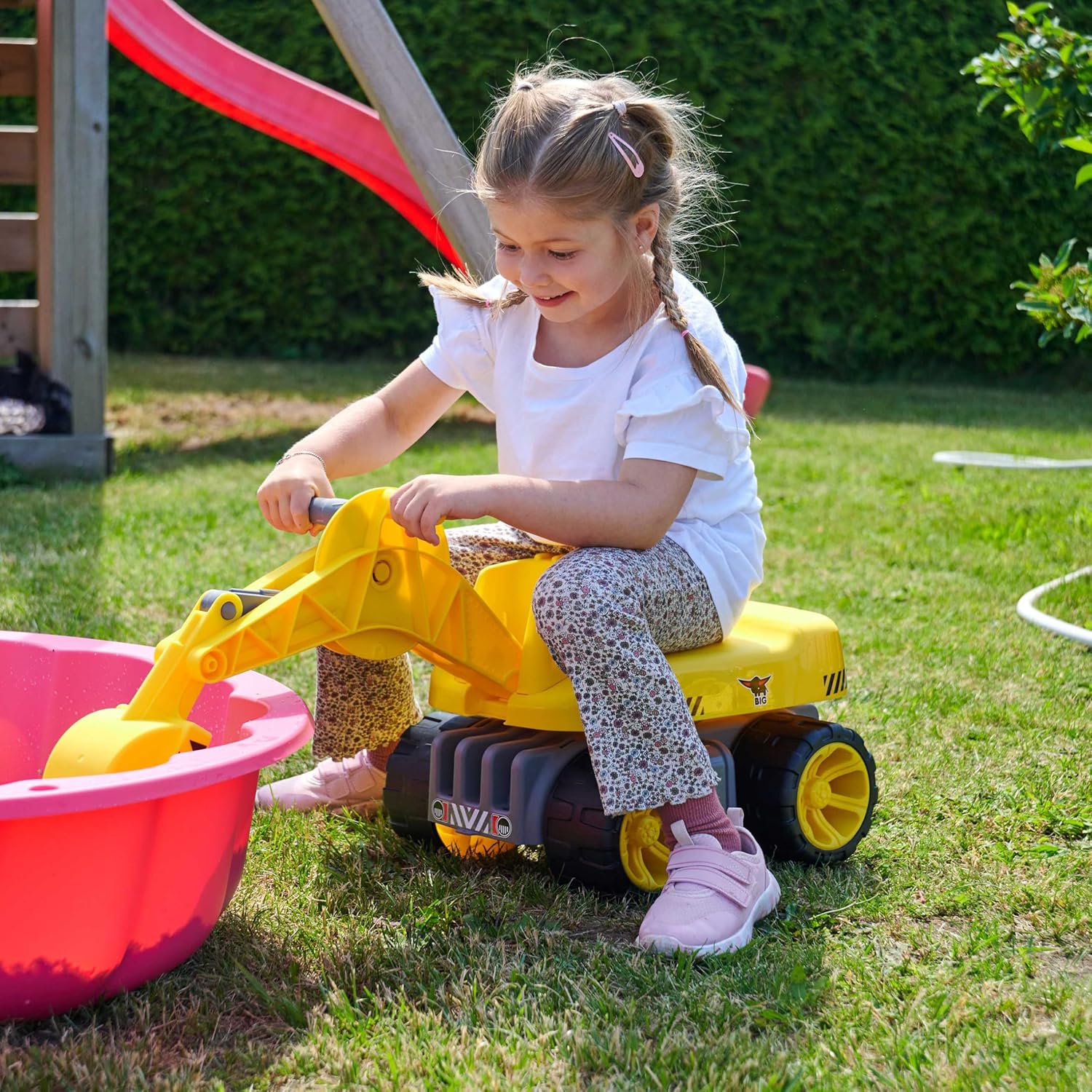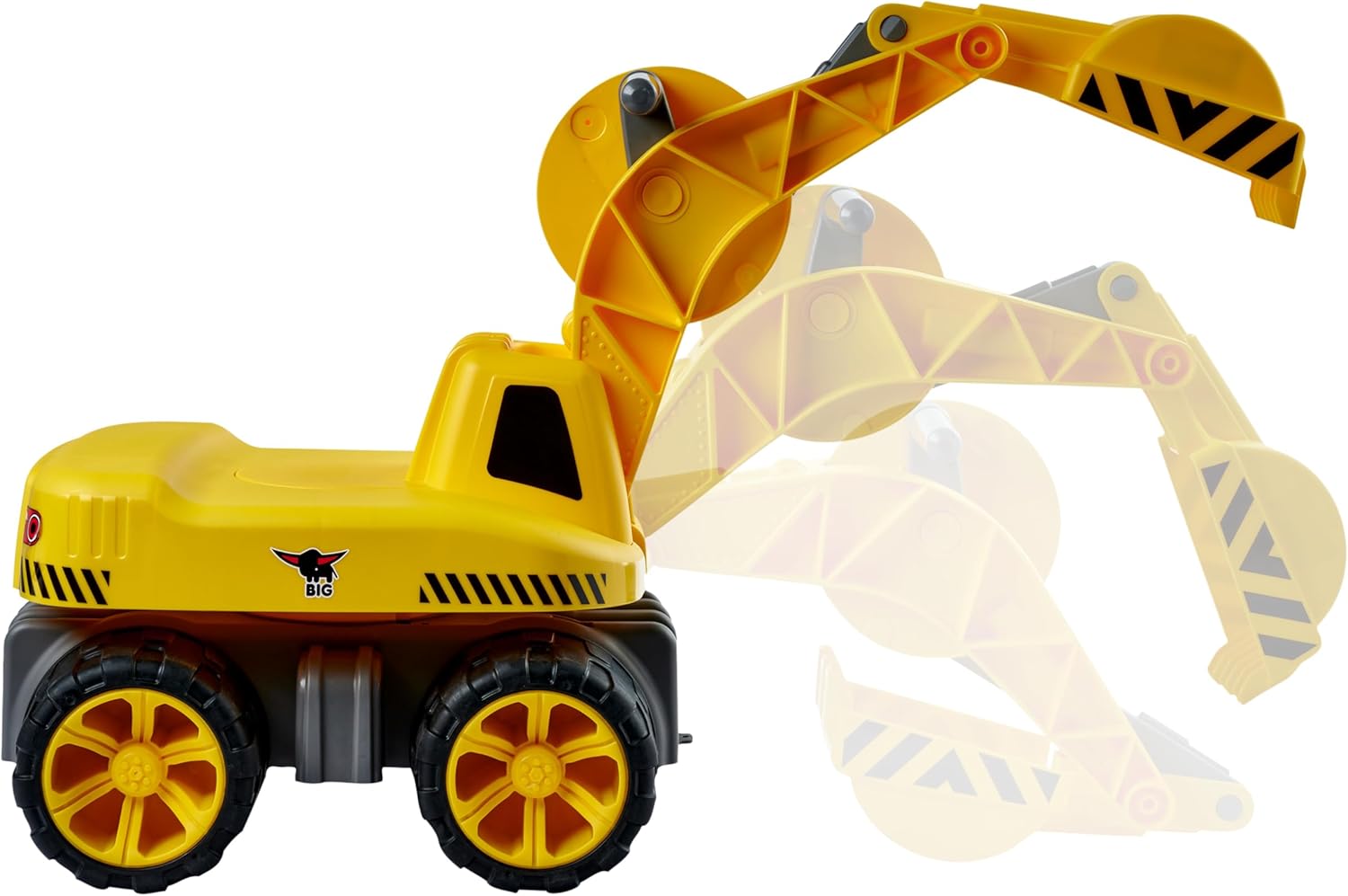Sedile ampio - Il sedile ergonomico può essere ruotato di 360°, con baricentro basso, la superficie può sopportare fino a 50 kg. Scavo facile - La funzione della pala corrisponde a quella degli originali di grandi dimensioni ed è adattata all'ergonomia del bambino e alle sue esigenze. Per interni ed esterni: grazie ai pneumatici morbidi, il veicolo da cantiere non lascia aloni sul pavimento e può essere utilizzato facilmente nella cameretta dei bambini. I pneumatici proteggono il rivestimento del pavimento. Facile da pulire: l'escavatore può essere facilmente pulito sotto l'acqua corrente. Grazie al materiale plastico di alta qualità, dopo aver giocato sulla sabbia diventa rapidamente pulito. Prodotto in Germania: il marchio BIG è noto per i giocattoli in plastica di alta qualità. Il Power-Worker Maxi Digger è più grande del 35% rispetto al noto Power-Worker e ai veicoli giocattolo convenzionali