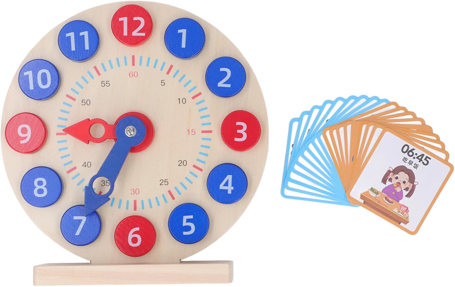 Coltiva il senso del tempo: insegnare l'orologio in legno aiuta i bambini a coltivare un buon senso del tempo in modo che possano imparare a svegliarsi e organizzare consapevolmente il tempo. Giocattoli educativi: offrono la doppia funzione dell'orologio dei numeri e dei giochi educativi per promuovere l'interesse del bambino per l'apprendimento. Schede di domande a doppia faccia: 18 carte domande a doppia faccia, domande frontali, risposte posteriori, aumentare il divertimento e la sfida del funzionamento del bambino. IMPARARE PRECEDI: Promuovi il pensiero logico e le capacità cognitive del tuo bambino assegnando tempo e orologio. Materiale di legno: l'insegnamento dell'orologio dimostrativo è realizzato in materiale di legno, delicatamente lucidato, sicuro ed ecologico. Puoi essere sicuro di usarlo.