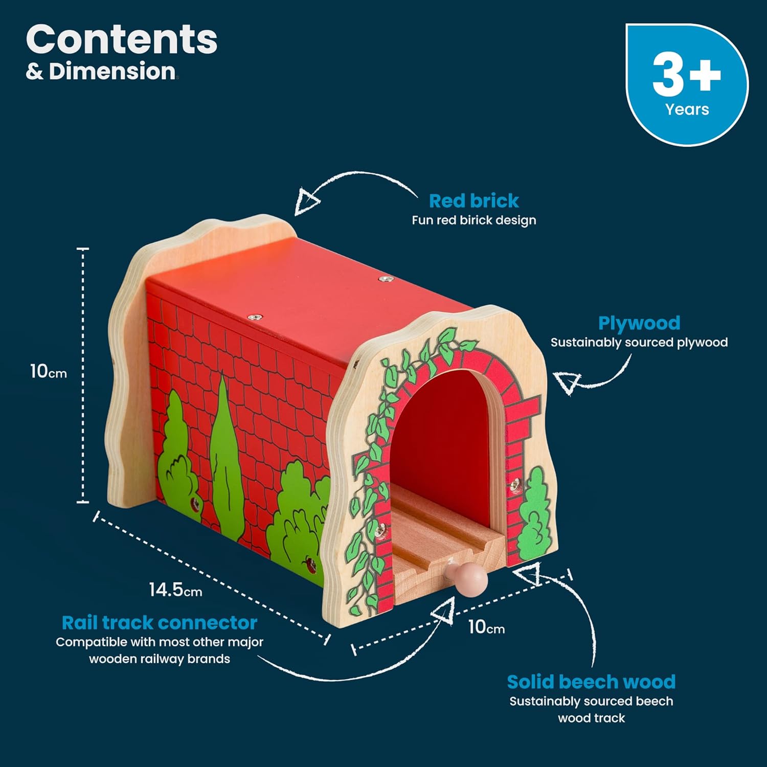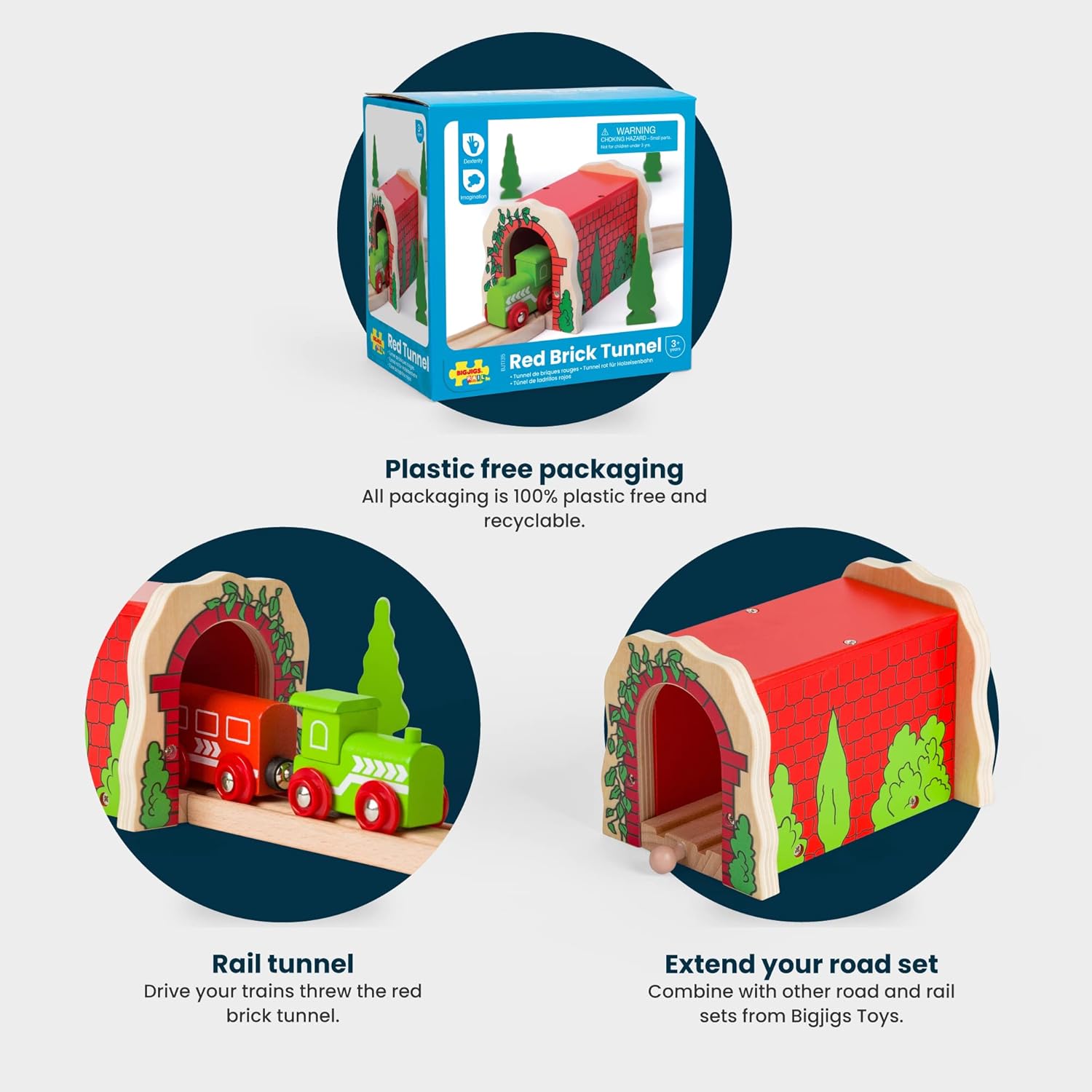 Un tunnel dai colori vivaci per aiutare a differenziare il paesaggio tra urbano e campagna. Una grande aggiunta a qualsiasi set treno di legno - rendendo ogni sessione di gioco unica. La maggior parte delle altre grandi marche ferroviarie in legno sono compatibili con Bigjigs Rail. Impostare il primo treno ideale. Realizzato in alta qualità, materiali responsabilmente provenienza.