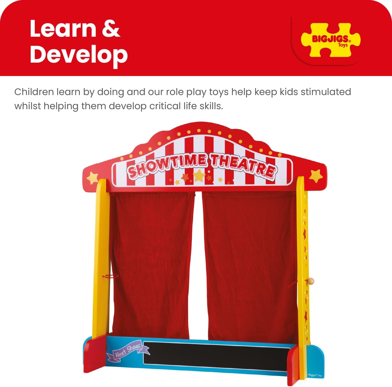 Teatro da Tavolo. Altezza: 650mm, Larghezza: 650mm. Età 3+ anni. Il montaggio deve essere eseguito da un adulto. Fabbricato con materiali di elevata qualità e ricavati responsabilmente.