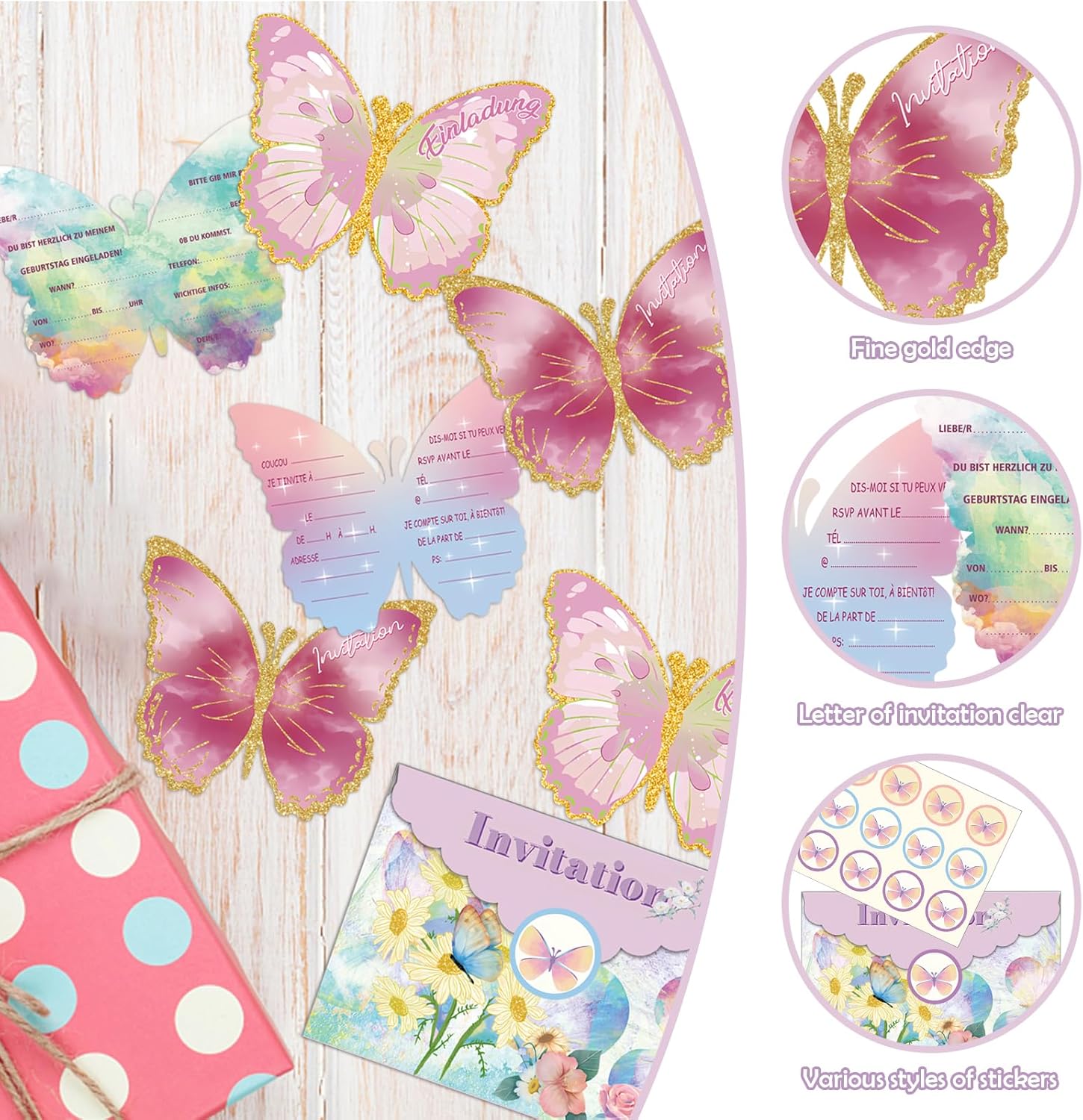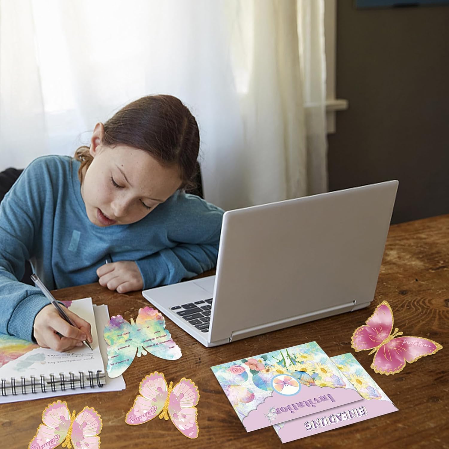 Zkaoai 12 Biglietti D'Invito Farfalla Per Ragazze Con 12 Buste Biglietti D'Invito Festa Di Compleanno Prodotto Per Ufficio Biglietto D'Auguri