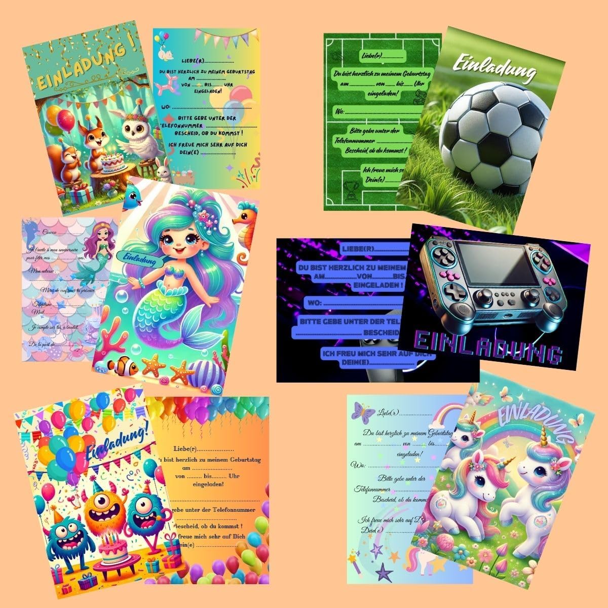 Design incantevole: biglietti dal design accattivante con motivi creativi – calcio, unicorni, mostri, animali, ideali per ogni festa. Riempito rapidamente: i testi chiari con campi bianchi rendono il riempimento di qualsiasi penna semplice e senza stress. Durevole: la parte anteriore laminata protegge il design dallo sporco e garantisce un aspetto di alta qualità. Scrivibile: grazie alla carta da 300 g, ogni testo rimane pulito e leggibile, senza sbavature o sbavature Perfetto e pratico: con 10 carte nel set avrete abbastanza per amici, familiari e compagni di classe.