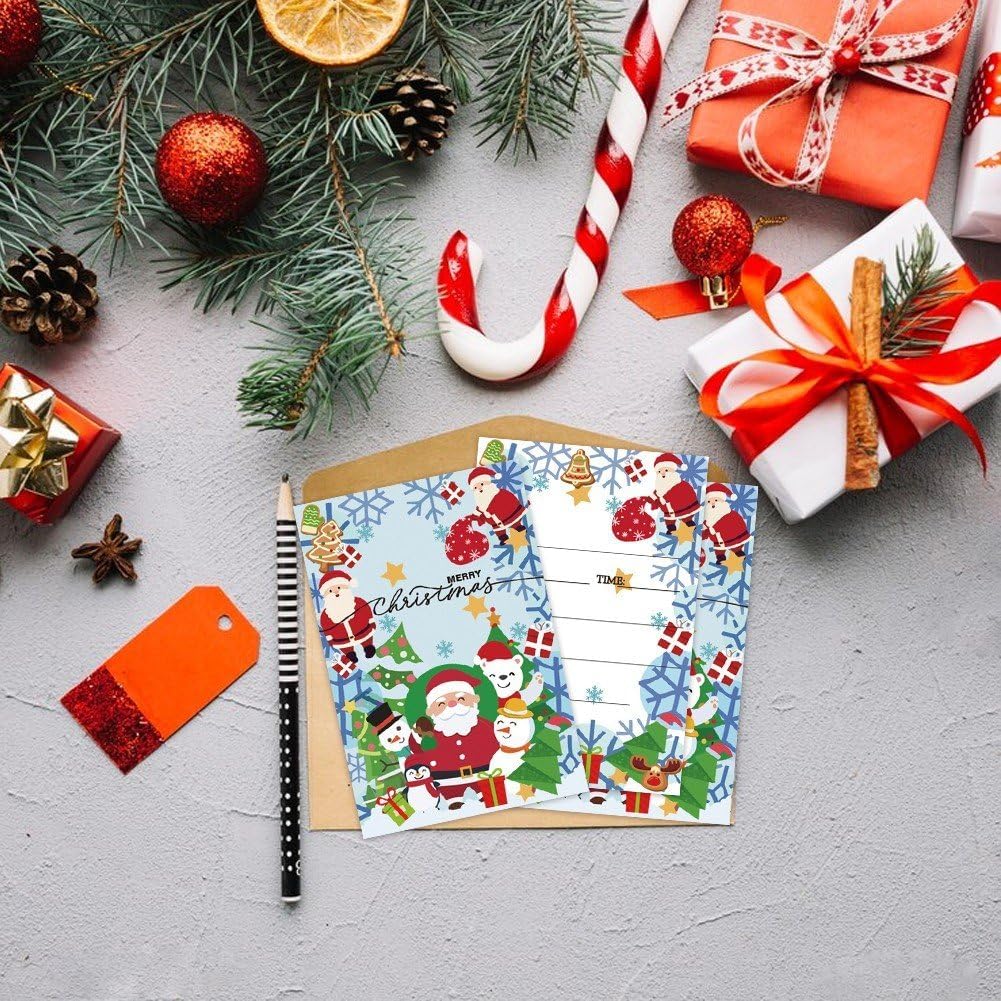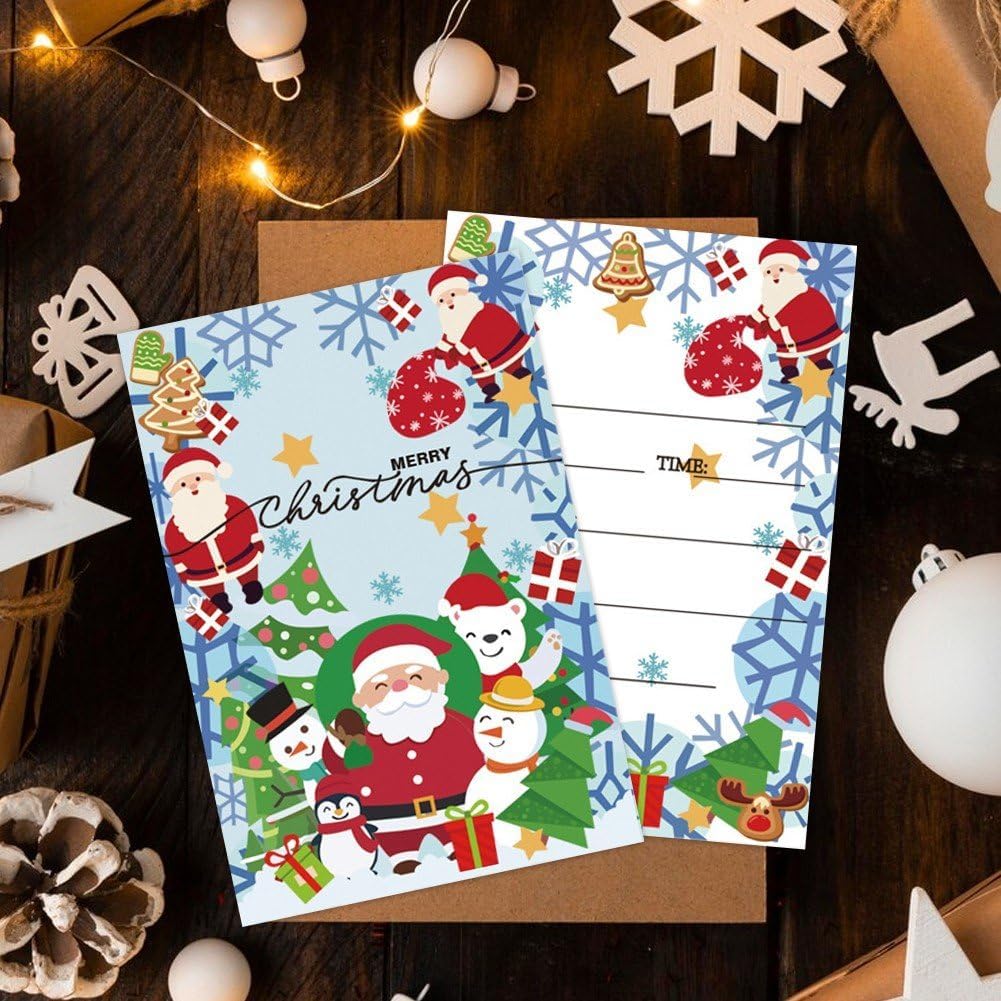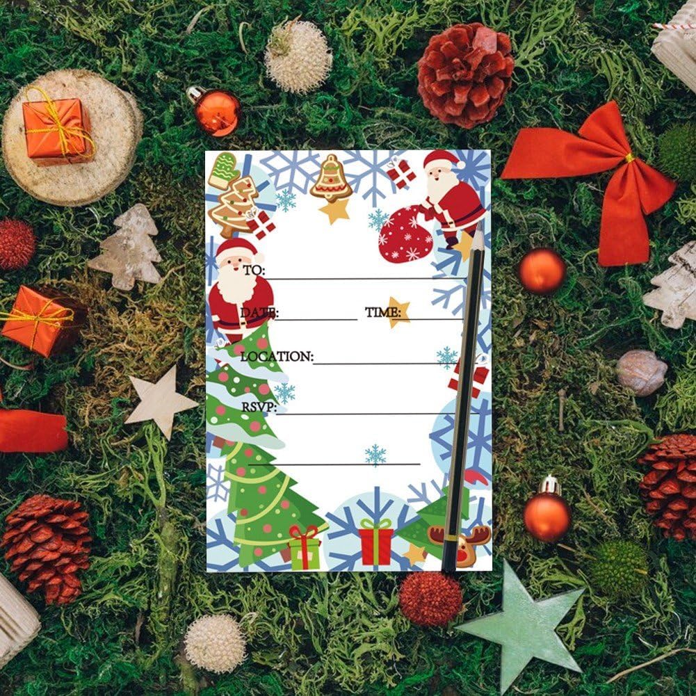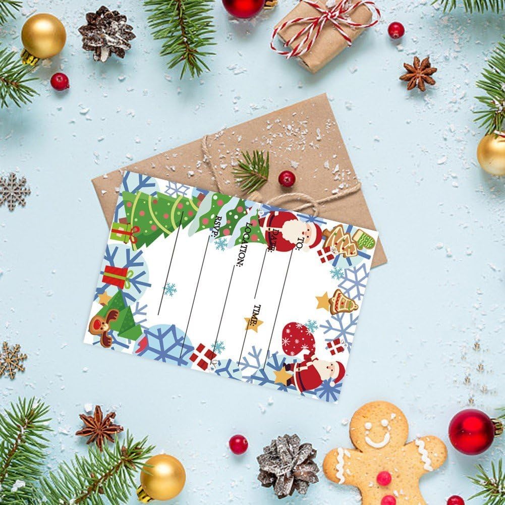 Riceverai 50 inviti per festa di Natale, ogni invito ha spazio per aggiungere i dettagli della festa. E nei biglietti d'invito vengono introdotti i dettagli della festa, i tuoi ospiti adoreranno ricevere questi inviti unici per partecipare alle tue attività natalizie o festive. Ideale regalare tuoi vicini, familiari, insegnanti, dirigenti tuoi compagni di classe, puoi inviarlo con regali o fiori. Perfetto per Natale, Capodanno, matrimonio, compleanno, vacanze invernali e altri giorni speciali. Realizzato in carta di buona qualità, con etichette informative chiare e interlinea sufficientemente ampia, molto fluido scrivere.