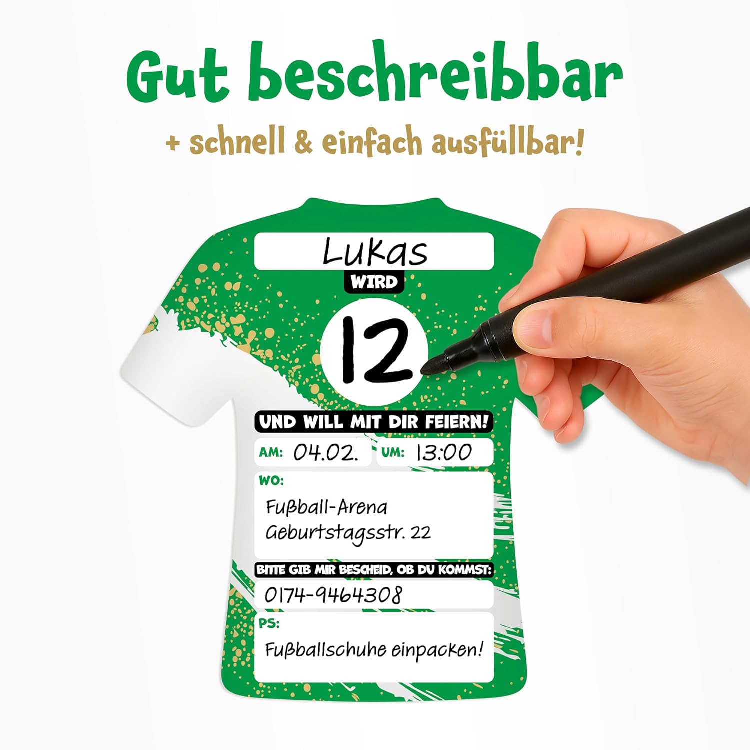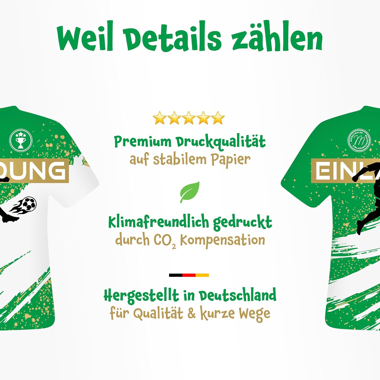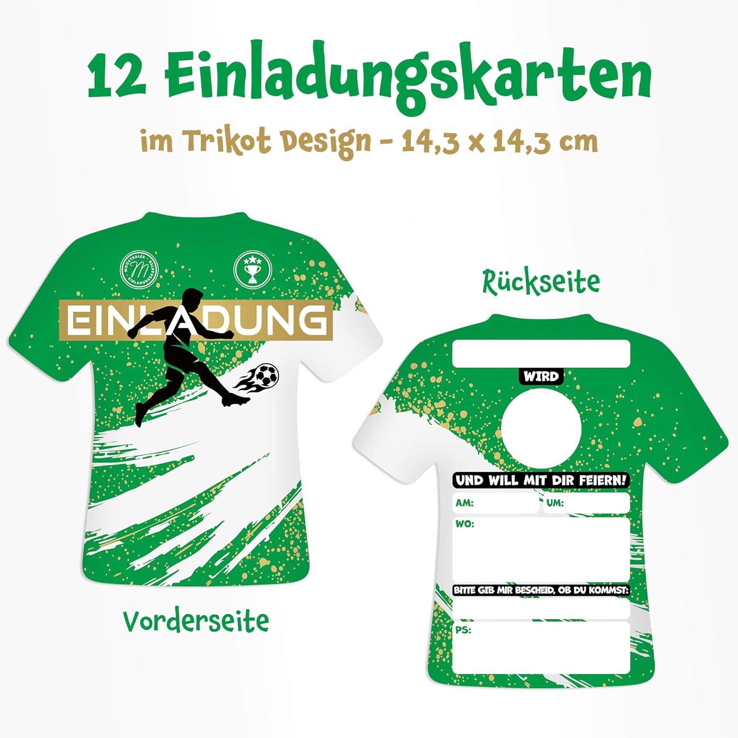 Per piccoli giocatori di giocatori, sia in campo che alla festa, con questi inviti da calcio in stile tricot l'avventura di compleanno inizia già quando si invita Perfetto per la festa del calcio – I biglietti d'invito Moosthaler in maglia completano perfettamente la decorazione da calcio e rendono così il compleanno dei bambini un vero gioco in casa Veloce e facile da riempire: grazie ai campi prestampati, ogni invito di compleanno è compilato in un batter d'occhio, ideale per bambini e genitori Prodotto in Germania: progettato e stampato in Germania, rispettoso del clima grazie al bilanciamento di CO₂. Stampa di alta qualità su carta robusta da 350 g/m² Contenuto della confezione: 12 biglietti d'invito in maglia (circa 14,3 x 14,3 cm). Parte anteriore con finitura lucida. Così la festa di calcio può salire