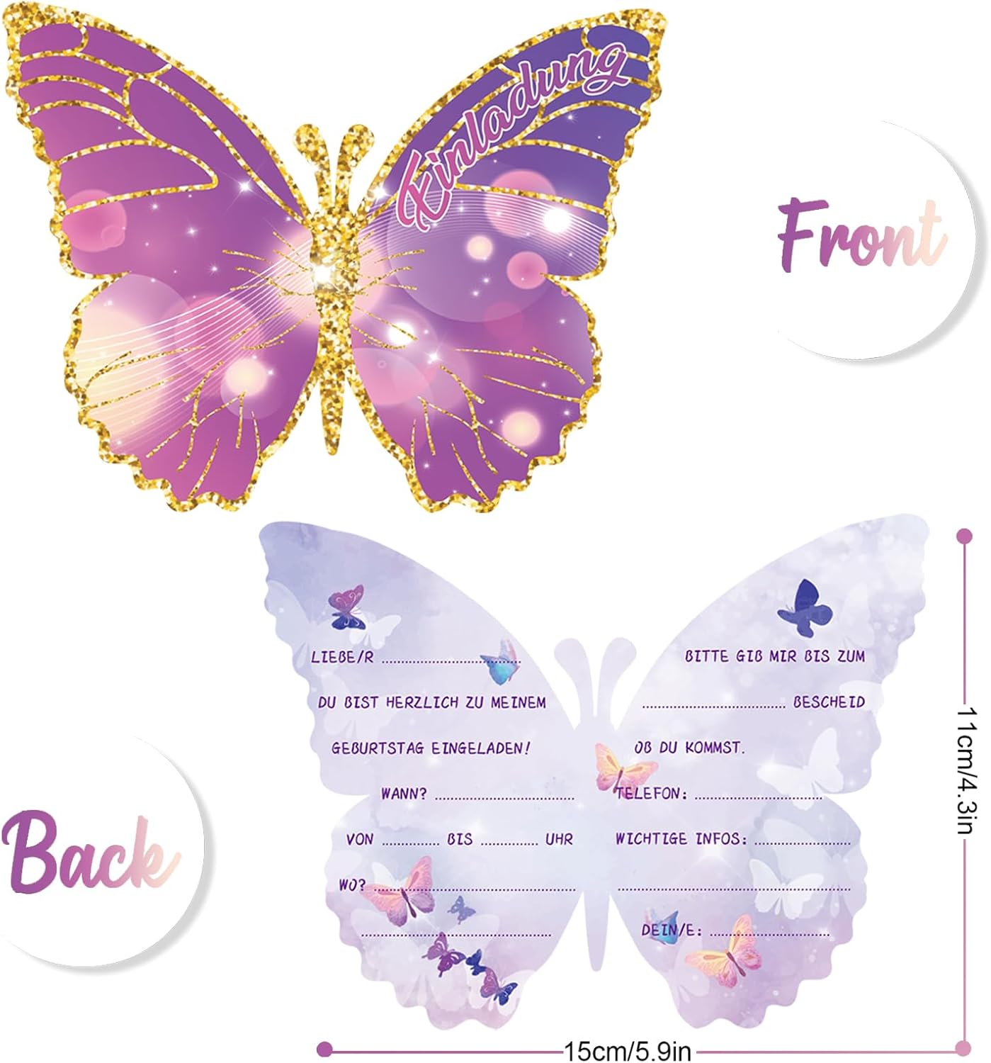 🦋【Biglietto d'invito con farfalla】 I nostri biglietti d'invito per il compleanno di bambini e ragazze hanno un vivace motivo a fumetti che crea una vivace atmosfera di festa. Il design colorato e vivace dei cartoni animati attira l'attenzione dei bambini e li fa attendere con ansia la festa di compleanno. 🌳【Carta spessa ecologica】 I biglietti d'invito per il compleanno dei bambini sono realizzati in carta riciclabile di alta qualità da 300 grammi e sono durevoli. È stato elaborato utilizzando una speciale tecnologia di stampa fronte-retro per garantire che la parte anteriore dei biglietti d'invito per il compleanno dei bambini abbia colori vivaci e che la parte posteriore offra dettagli chiari e una facile scrittura. 🌺【Facile da compilare】 12 biglietti d'invito per ragazze dal design intelligente che misurano 14 x 11 cm offrono spazio sufficiente per i nomi degli ospiti, la data, l'ora, il luogo e le informazioni sulla risposta. Gli inviti di compleanno per ragazze rendono il tuo invito più semplice e sono la decorazione perfetta per le feste di compleanno. 🎉【Conserva un ricordo】 L'invito al compleanno dei bambini per ragazze può diventare un souvenir per i bambini. Puoi conservare il biglietto d'invito e ricordare la sua festa di compleanno. Puoi anche condividere i tuoi biglietti d'invito di compleanno con gli amici e rafforzare l'amicizia tra i bambini. 🎈【Garanzia di qualità】Ti garantiamo una qualità di prima classe al 100% e il miglior servizio. Se ricevi un invito per il compleanno di un bambino con problemi di qualità, puoi cambiarlo gratuitamente.