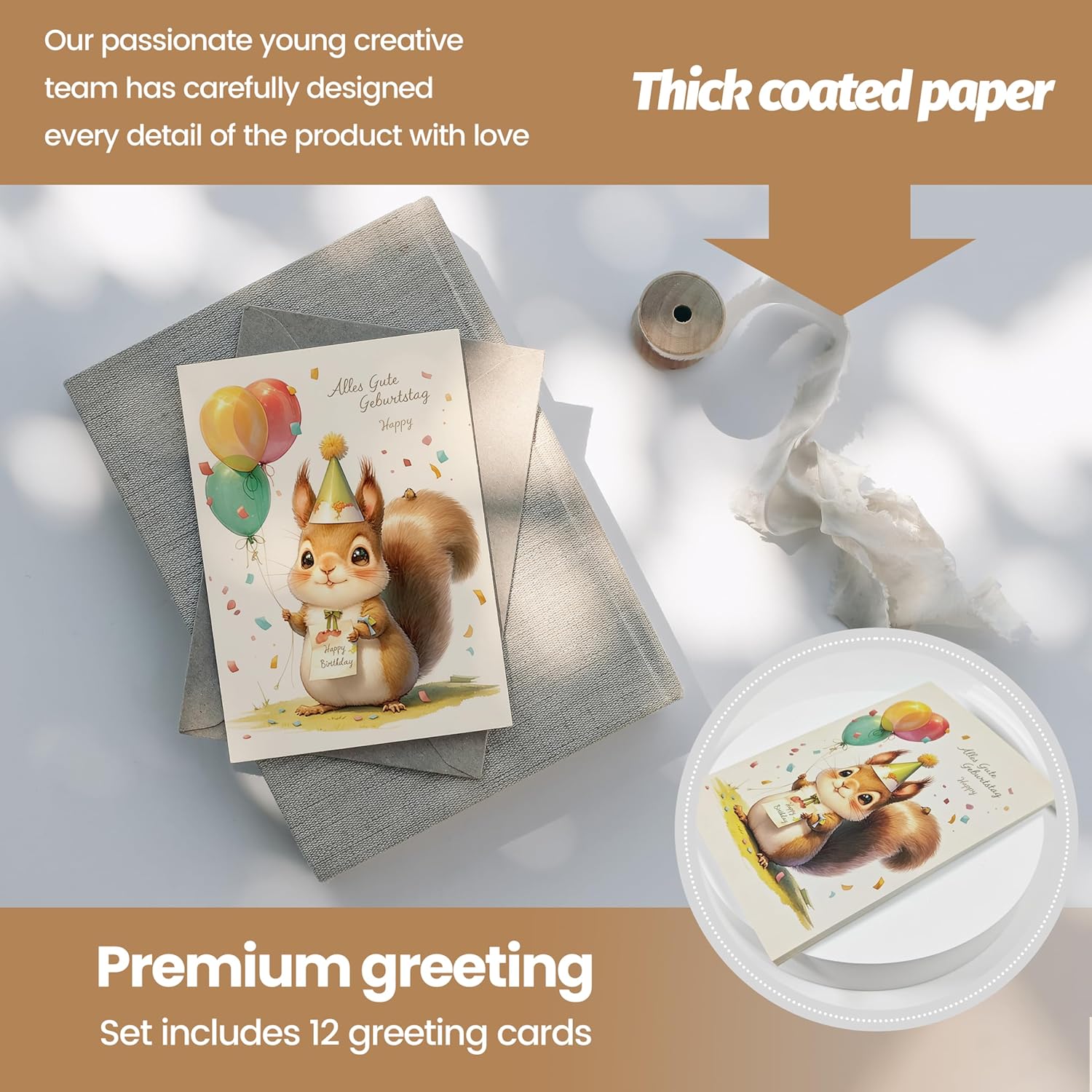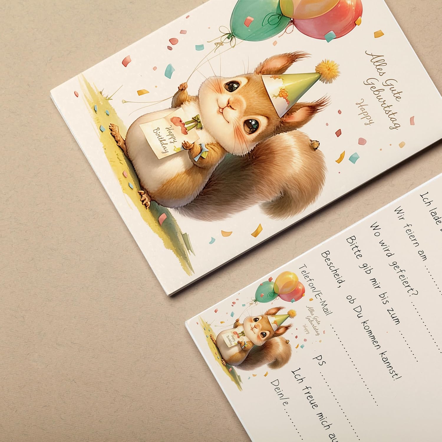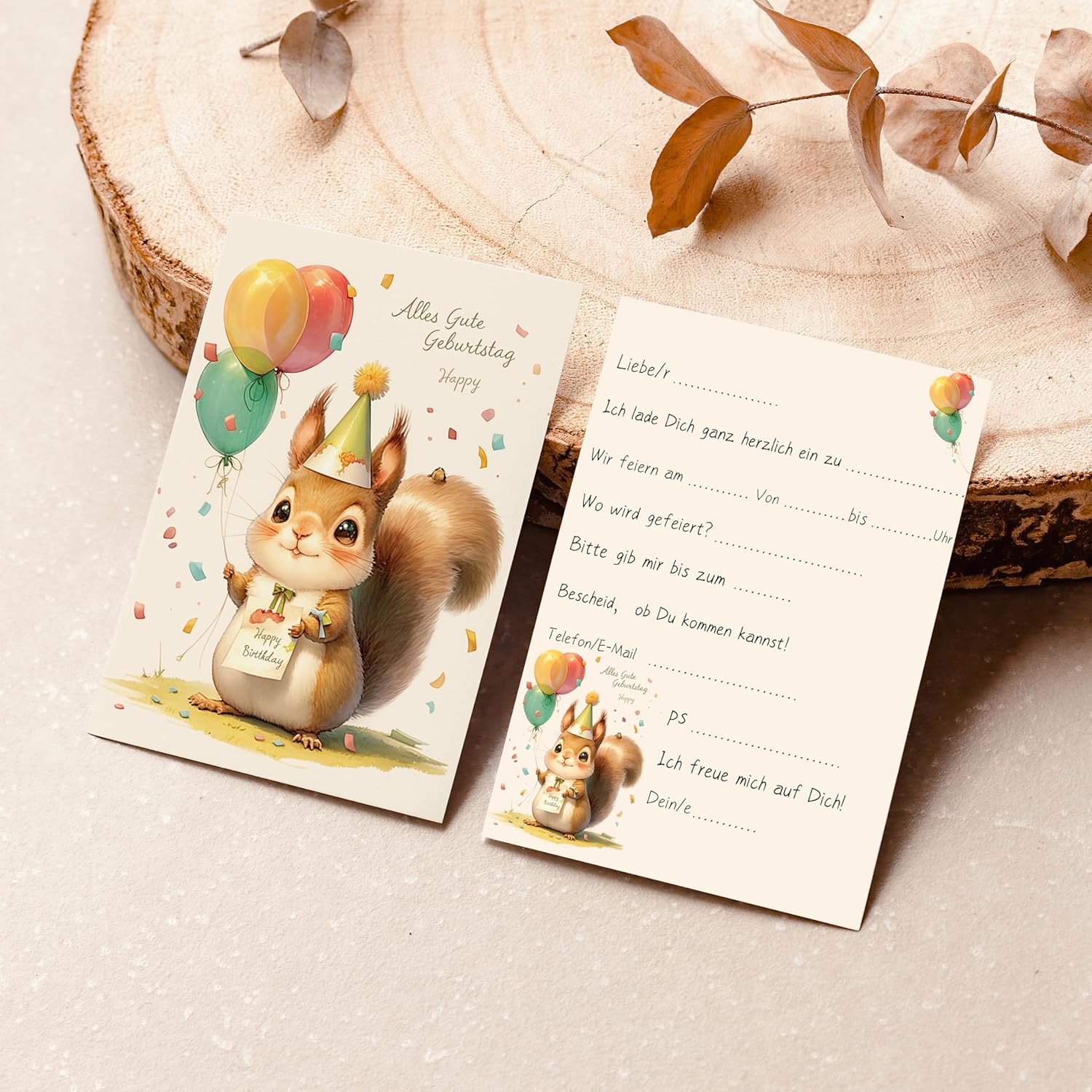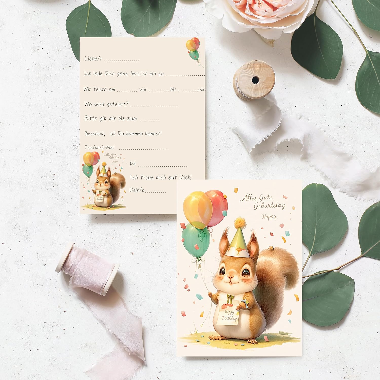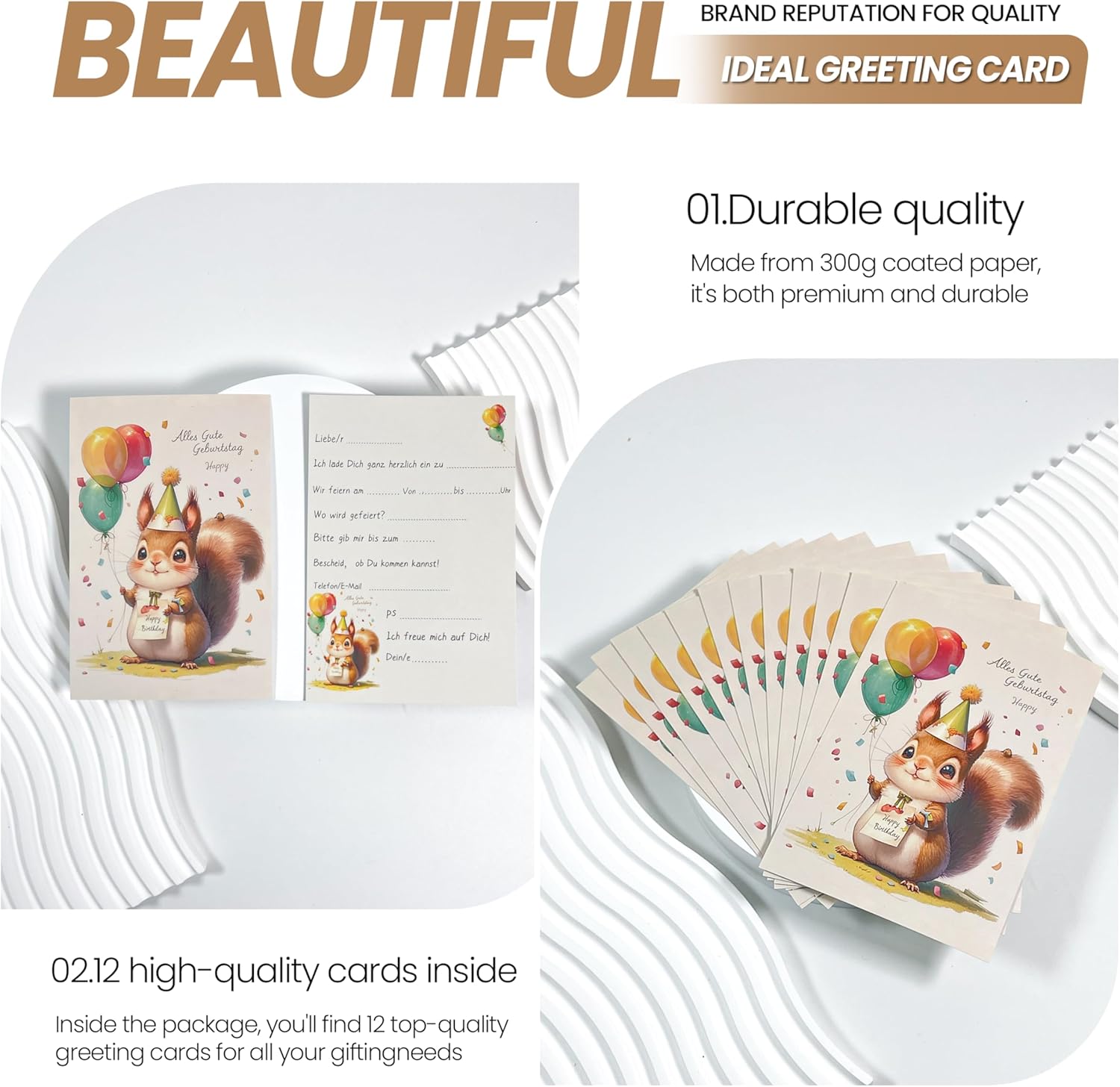 【Il prodotto contiene: un biglietto di invito di compleanno a scoiattolo pieghevole da 14 x 14 cm con una custodia trasparente in polipropilene. Stile: gli inviti sono caratterizzati da colori vivaci e vivaci, motivi vivaci e carini e layout creativi per creare un'atmosfera allegra e calda da festa. Dettagli e consistenza: il biglietto d'invito per bambini è realizzato in carta rigida lucida con bellissimi motivi e colori delicati. Bellissimi ricordi: un biglietto di invito per il compleanno dei bambini non è solo un invito a una festa, ma anche un prezioso ricordo. Quando la festa è finita, bambini e genitori possono conservare il biglietto di invito come parte dei ricordi. Informazioni sulla scrittura: c'è abbastanza spazio per scrivere tutte le informazioni importanti con tutte le penne comuni. Saranno il ricordo d'infanzia perfetto per ogni piccola principessa. "