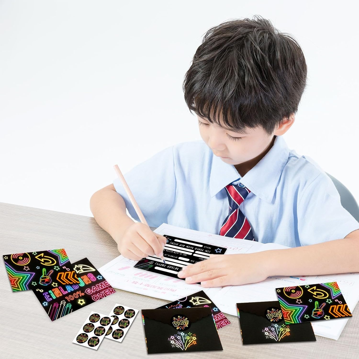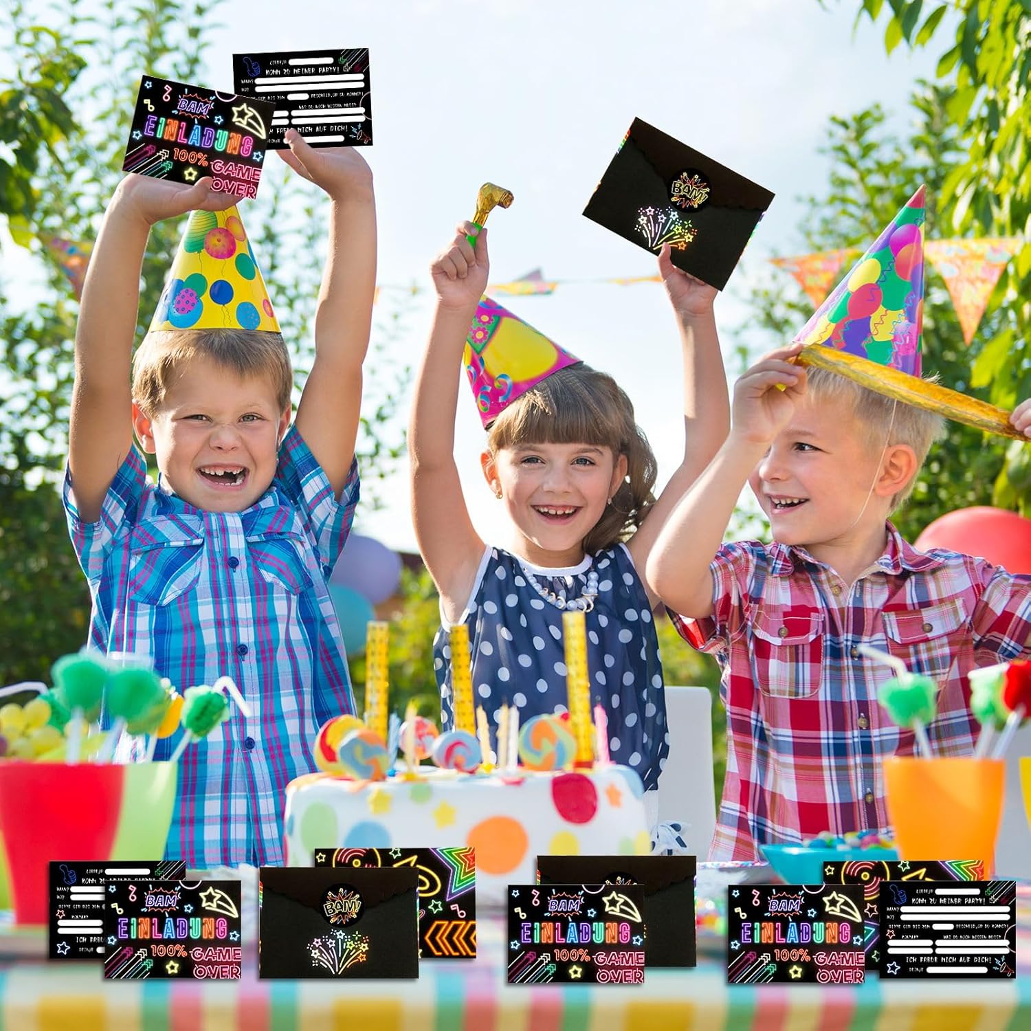 Set di biglietti di invito al neon: immergetevi nel mondo sognante dei colori al neon con il nostro set di biglietti di invito neon. Il set contiene 12 biglietti d'invito tedeschi splendidamente progettati, 12 buste abbinate e 12 adesivi alla moda Materiale di alta qualità: i nostri biglietti d'invito sono realizzati in carta di alta qualità, che non è solo bella ma anche durevole. I biglietti sono facili da tenere in mano e si sentono di alta qualità 【 Neon Light Designt】Gli elementi luminosi al neon dei nostri biglietti di invito hanno un design magico e cool. Il mondo di gioco fantastico ma intenso e i colori al neon colorati stimolano l'immaginazione dei bambini, perfetti per feste per bambini, feste di compleanno o altri inviti a eventi Pratici e facili da usare: questi inviti neon e buste sono già progettati. Basta inserire il messaggio di invito. Non è necessario alcun funzionamento manuale, risparmiando tempo e fatica ed è molto pratico Versatile: i nostri biglietti di invito al neon sono ampiamente utilizzati per feste di compleanno per ragazzi e ragazze, battesimi, baby shower, matrimoni e molte altre occasioni. Sono molto accattivanti e possono creare un'atmosfera per il vostro evento