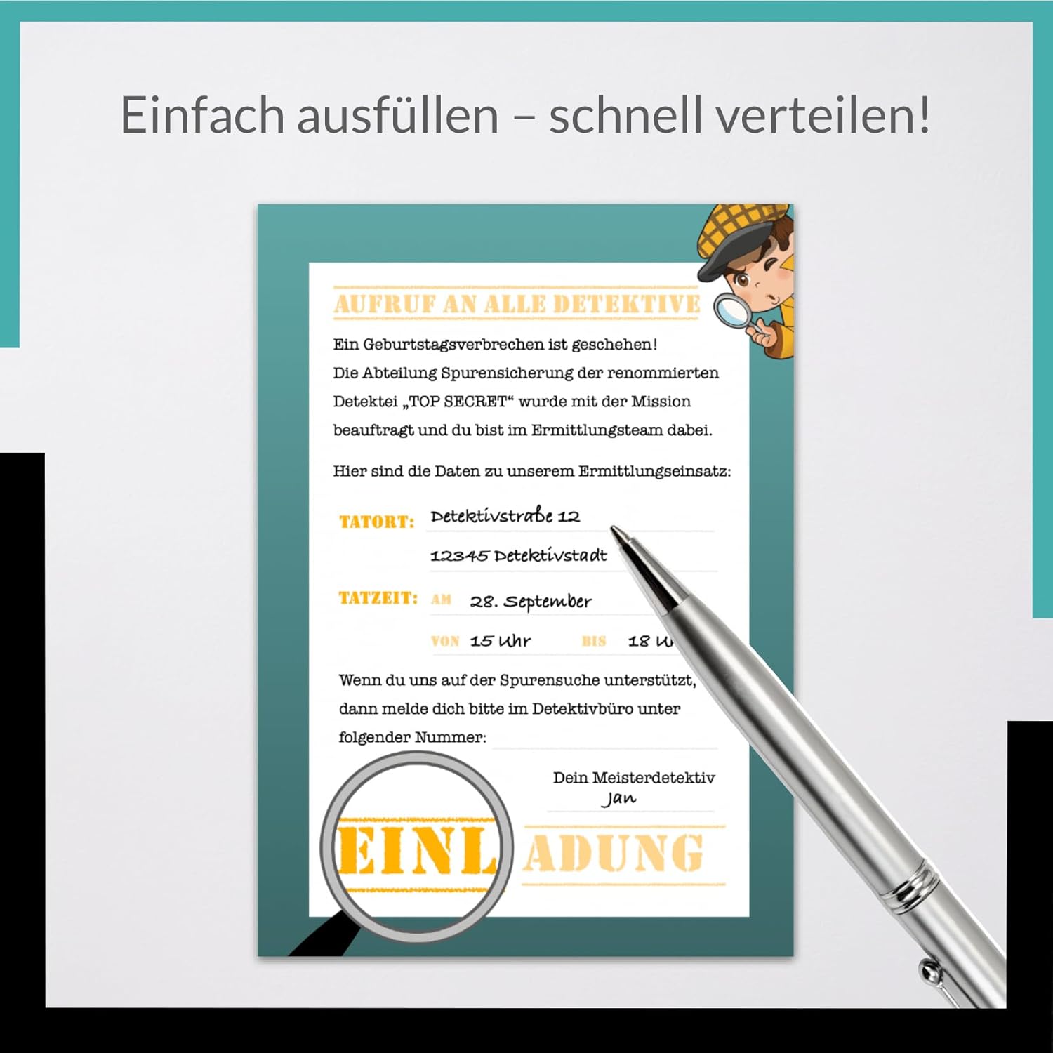 Design accattivante: i biglietti d'invito perfetti per feste di compleanno per bambini e feste a tema. Con un fantastico motivo detective che entusiasma i piccoli ospiti e fa venire voglia di festeggiare. Spazio sufficiente per tutte le informazioni: spazio per data, ora, luogo e altri dettagli importanti, facile e veloce da compilare. Formato pratico: dimensioni compatte in formato DIN A6 (148 x 105 mm), ideale per la mano o la busta. Set di 12 biglietti: contiene 12 biglietti d'invito di alta qualità in cartone resistente, resistente, durevole e perfetto per scrivere. Utilizzo versatile: che si tratti di un compleanno, una festa investigativa o un evento per bambini, questi biglietti d'invito garantiscono una gioia e rendono speciale ogni celebrazione