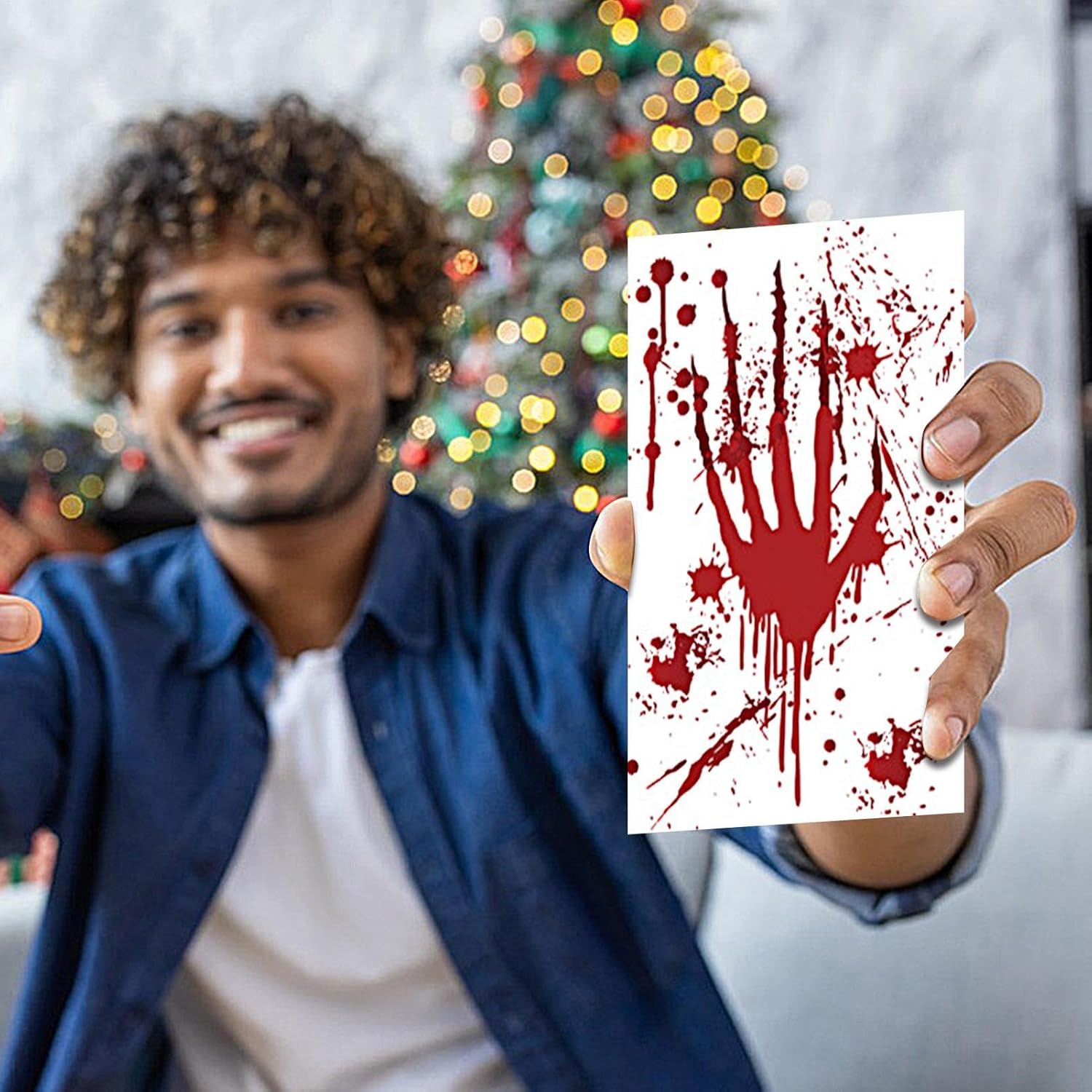 DESIGN UNICO: i nostri biglietti d'auguri presentano un design unico con un motivo di impronte di mani insanguinate che aggiunge un tocco inquietante e creativo ai tuoi auguri festivi. Materiali sicuri: i tuoi amici rimarranno stupiti dagli auguri indimenticabili che invii con le nostre carte in materiale cartaceo di alta qualità. Con un design sicuro, queste carte sicure e inodori offrono un'esperienza di scrittura fluida e possono essere conservate per anni. Ornamenti per pagine interne: migliora i tuoi con i nostri biglietti d'auguri. Ottimo per abitazioni, spazi di lavoro, negozi e alberghi. Incorniciali come decorazioni o inviali per feste al chiuso. Eccellente fattura: questi biglietti d'auguri offrono un'eccellente lavorazione per garantire un aspetto liscio e una stampa chiara. Con spazio sufficiente sul retro, puoi scrivere benedizioni e messaggi nel contenuto del tuo cuore. E il materiale resistente allo sbiadimento garantisce che le tue carte durino. Ottima applicazione: incanta e affascina i tuoi amici con questi biglietti di auguri e rendili una deliziosa sorpresa per familiari, amici e colleghi. Diffondi le benedizioni delle festività e invia inviti con facilità, rendendolo la scelta perfetta per le celebrazioni più diffuse.