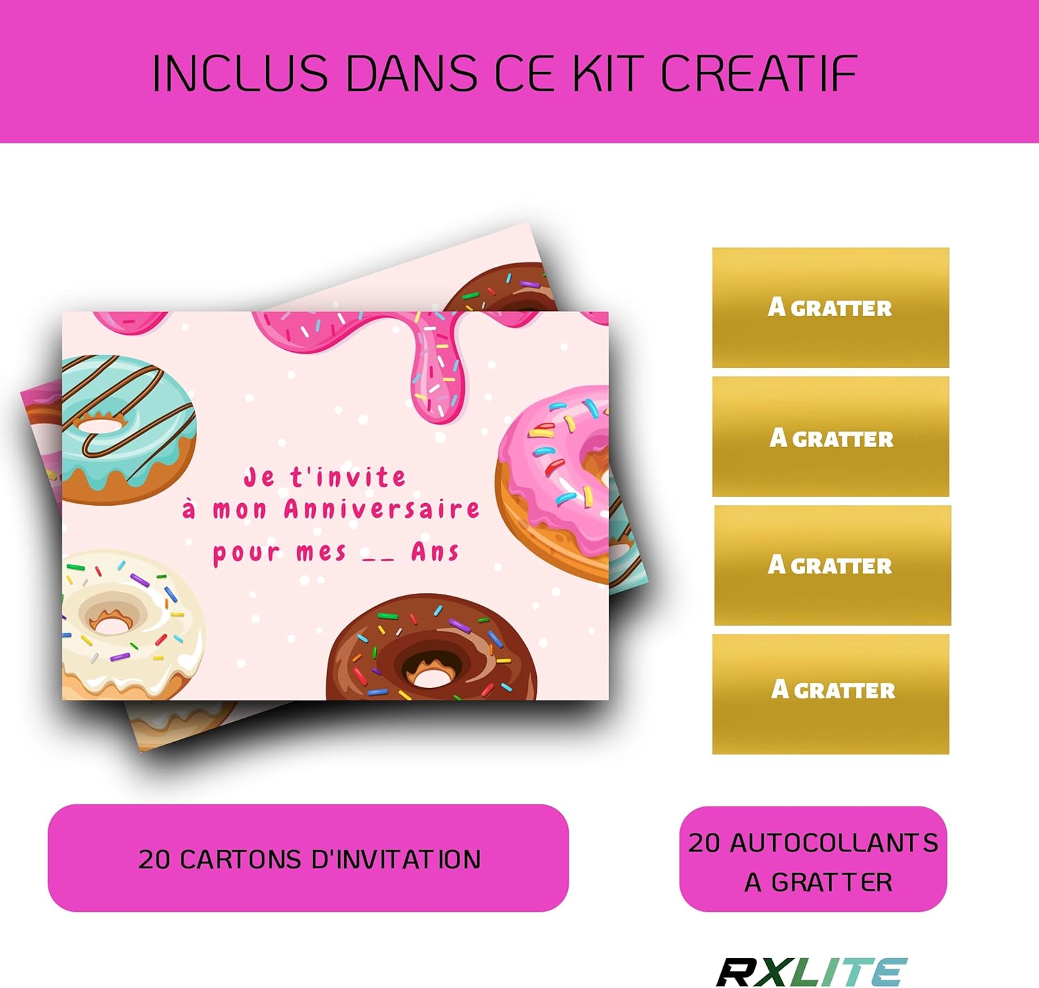 SUCCHIARE LA TUA FESTA CON I NOSTRI INVITI MAGICI! A RXLITE abbiamo inventato biglietti d'invito irresistibili come una fetta di torta al cioccolato. Ogni carta promette momenti deliziosi in prospettiva! Aggiungi un tocco di suspense con i nostri adesivi dorati da graffiare. I tuoi piccoli ospiti saranno sia curiosi che entusiasti di scoprire il luogo segreto della festa. Rendi ogni invito un assaggio festivo. RXLITE la promessa di una festa che risveglierà tutti i sensi! Kit creativo tutto incluso: 20 cartoni di invito di alta qualità a tema ciambelle gourmand, abbinati a 20 adesivi da grattare per nascondere il luogo della festa tanto attesa. è andato per riempire gli inviti ora. Il bambino può partecipare alla preparazione del suo anno : Il potrà facilmente completare per compilare le informazioni nei campi di testo, scrivere la data, l'ora, i dettagli di contatto per invitare i suoi compagni (amici e fidanzate) su di esso, incollare gli adesivi da graffiare. Grazie a questo concetto, una semplice carta d'invito si trasforma in un'attività manuale. SOCITA INTERET ET CURIOSITE : Senza dubbio questa carta causerà un interrogativo, susciterà interesse. Questo pacchetto di prodotti è innovativo. è un nuovo design che aggiungerà un tocco di originalità al suo compleanno... Sono finiti gli inviti classici, I piccoli ospiti saranno ansiosi di incontrarsi per trascorrere un po"insieme e la festa avrà successo. Kit francese: l'intero kit è stato pensato, concettualizzato e stampato e assemblato in Francia, e più precisamente negli Alti di Francia. RXLITE è un'azienda familiare unica, controlliamo la qualità di ogni prodotto, perché li uniamo da soli. Abbiamo fatto la scelta di utilizzare il circuito corto per il carattere eco responsabile che abbiamo voluto dare a questa mappa. la stampa con cui lavoriamo ha la certificazione STAMPA VERDE.