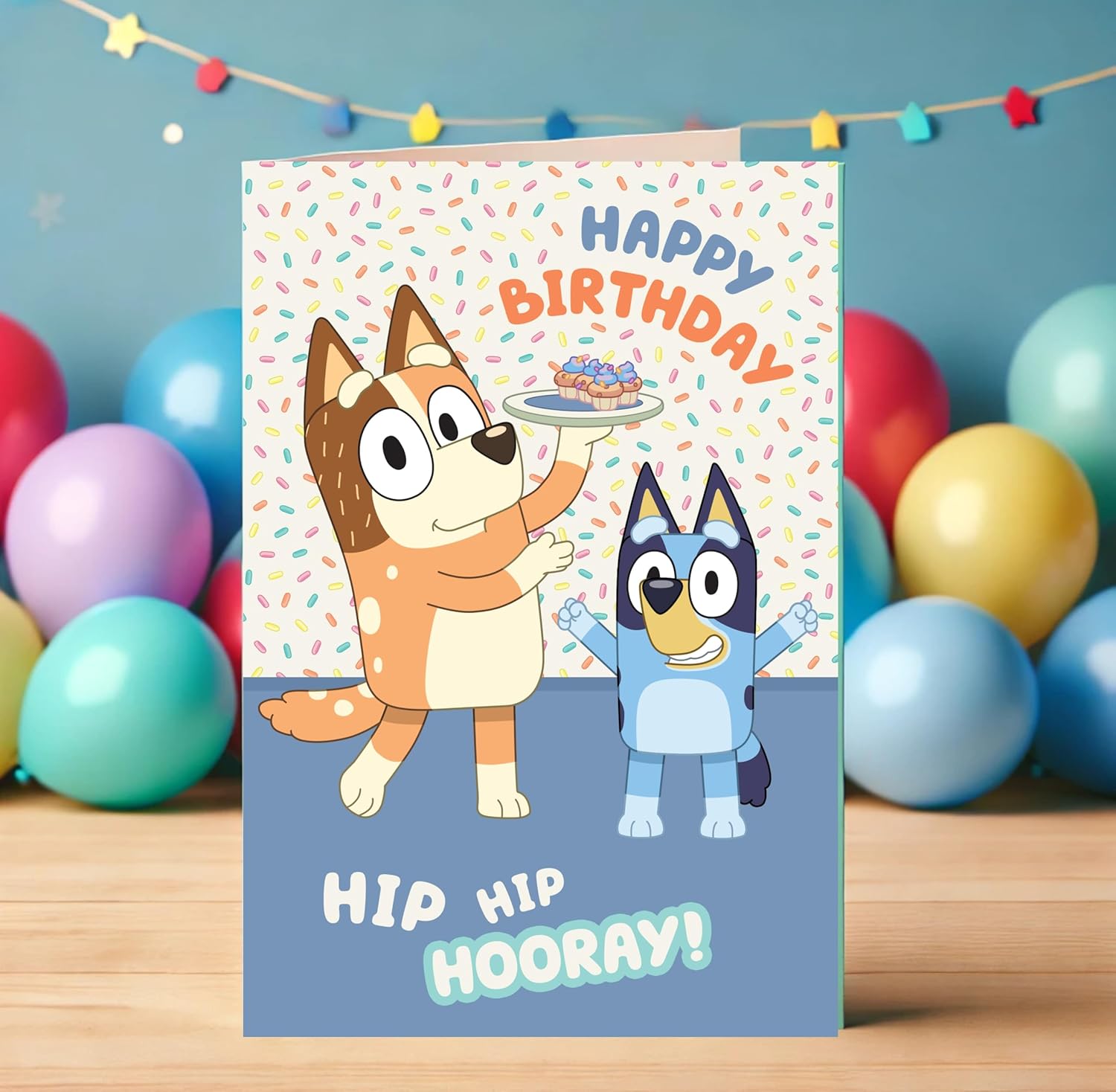 Questo biglietto d'auguri di Bluey dice "BIRTHDAY FUN!" ". La foto sulla copertina è un'onda blu. All'interno c'è molto spazio per scrivere il tuo messaggio personale. DESIGN Audace e di alta qualità: realizzato in cartoncino spesso e resistente con una finitura opaca liscia, questo biglietto è progettato per risaltare con i suoi colori vivaci e accattivanti e un messaggio stimolante. Rendi il giorno speciale di qualcuno ancora più memorabile con questo biglietto di auguri di compleanno dal design accattivante. Che si tratti di un amico, un familiare, un collega o una persona cara, questo biglietto premuroso è un modo meraviglioso per inviare i tuoi migliori auguri e realizzarli. sentirsi davvero speciale.