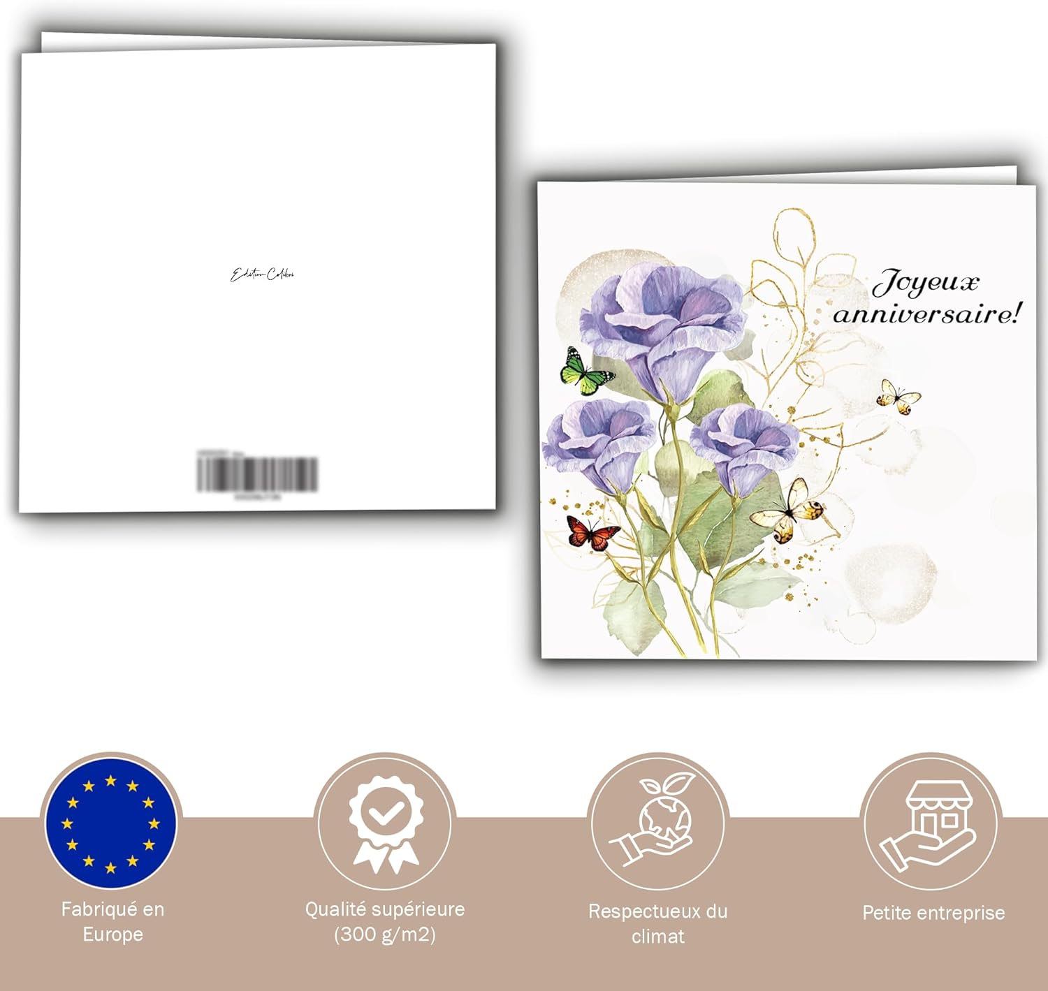 🌸 BIGLIETTO DI COMPLEANNO CON FIORI DI LAVANDA: Fiori e farfalle ad acquerello – Biglietto elegante e ispirato alla natura per gli amanti dei fiori 📦 CONTENUTO: Un biglietto d'auguri piegato quadrato con busta kraft premium abbinata – ideale per messaggi premurosi. L'interno vuoto offre ampio spazio per parole scritte a mano o tocchi creativi. 📐 DIMENSIONI GENEROSE: design quadrato accattivante (15 x 15 cm): uno stile che si distingue per tutti i tuoi messaggi. Stampato su cartoncino spesso da 300 g/m² con finitura liscia e naturale: durevole e di alta qualità. 🌿 SOSTENIBILE E SOLIDALE: stampato su carta certificata FSC con una busta kraft riciclabile, utilizzando processi rispettosi del clima. Una selezione di prodotti è realizzata in collaborazione con le istituzioni sociali – per carte che hanno cuore e significato. 💛 CHI SIAMO: Ciao, siamo Edition Colibri – una piccola azienda austriaca con un grande cuore. Dal 2012 creiamo articoli di cancelleria illustrati a mano che hanno già deliziato più di un milione di clienti.