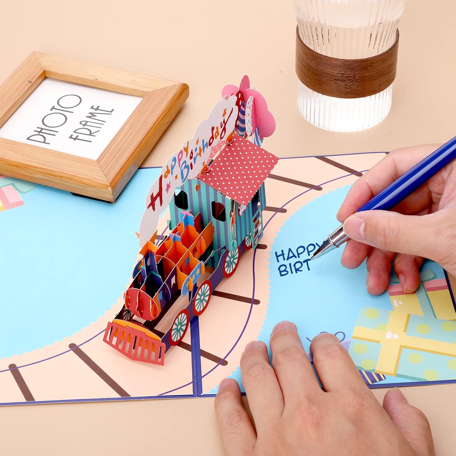 Materiali di alta qualità: i nostri biglietti di auguri pop-up 3D del treno di compleanno sono realizzati con materiali cartacei di alta qualità, hanno una superficie liscia, un tocco confortevole, sono sicuri e inodore, durevoli e possono essere conservati a lungo. Confezione: riceverai un biglietto di auguri per il treno di compleanno tridimensionale 3D, dimensioni: biglietto del treno aperto: 30 * 20 * 11 * cm / 11,8 * 7,9 * 4,3 pollici, busta gialla: 21 * 16 * 0,06 cm / 8,3 * 6,3 * 0,02 pollici. Design raffinato: il biglietto di auguri del treno di compleanno tridimensionale 3D è squisito nella lavorazione e ha un design unico. Ogni taglio cavo è pulito e bello, elegante nell'aspetto. Questo è un treno decorato con elementi di compleanno. Viene fornito con busta: scrivi quello che vuoi dire sul biglietto di auguri, potrai utilizzare il biglietto per esprimere i tuoi auguri di compleanno, sarà un regalo indimenticabile e da tenere come ricordo. Ambito di applicazione: il biglietto di auguri di compleanno del treno pop-up 3D è un regalo di compleanno ideale per i bambini. La forma generale del treno è molto carina e riserverà sorprese ai destinatari. È anche molto adatto per piani di tavoli e decorazioni per feste.
