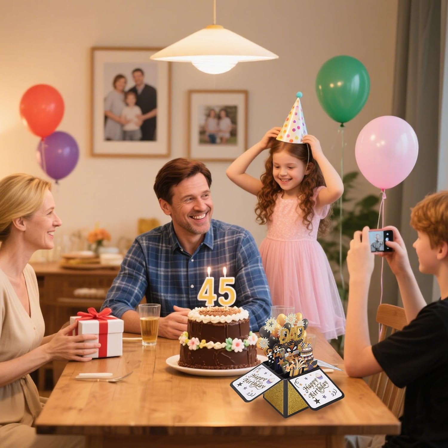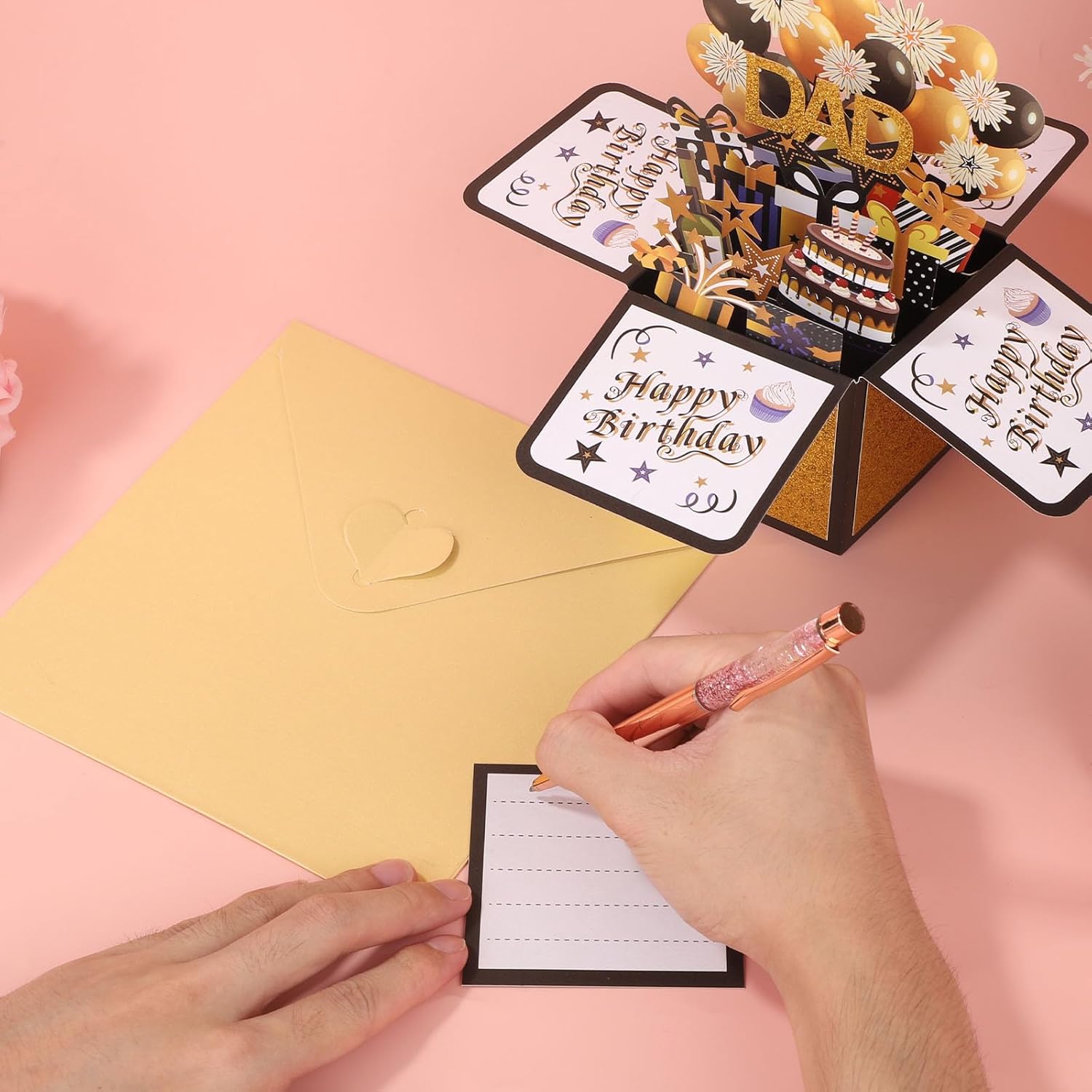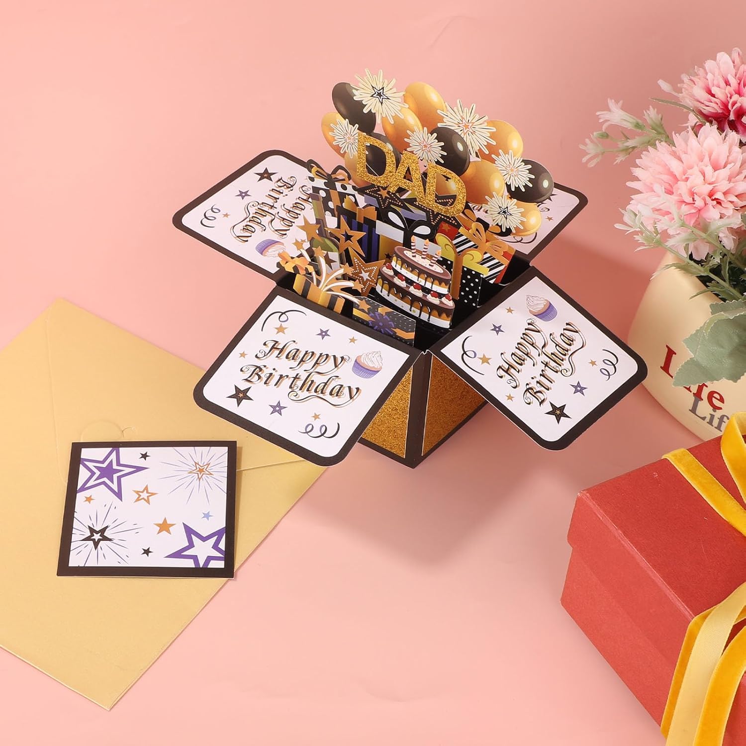 Prodotto incluso: riceverai 1 biglietto pop-up di compleanno per papà e 1 busta. Regala questo biglietto per creare una festa di compleanno memorabile per papà. Materiale di qualità: il biglietto di auguri regalo pop-up di compleanno è realizzato in materiale cartaceo di buona qualità. La carta è spessa e resistente e non sbiadisce facilmente, quindi puoi usarla con sicurezza. Dimensioni del prodotto: il biglietto pop-up di compleanno misura circa 25,6x19,7 cm. È leggero e facile da riporre. Può essere utilizzato come biglietto di auguri o decorazione per una festa di compleanno. Design speciale: questo biglietto d'auguri presenta un meccanismo pop-up creativo che crea uno straordinario effetto 3D quando viene aperto. Presenta elementi classici come torte, fuochi d'artificio, palloncini e un design a scatola pieghevole, creando un'atmosfera festosa. Ottimo regalo: il biglietto pop-up di compleanno è un regalo di compleanno ideale per padre, marito e nonno. Non è solo una benedizione ma anche un sincero augurio per portare gioia e felicità nel giorno del loro compleanno.