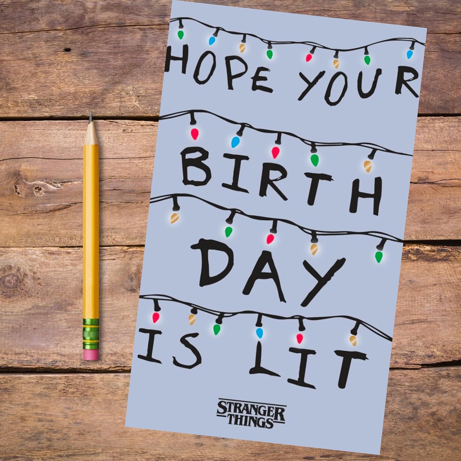 Il biglietto d'auguri di Stranger Things è il modo perfetto per augurare un compleanno emozionante a un fan dello show di successo. Con il suo design audace, delizierà ogni fan. All'interno troverai molto spazio per scrivere un messaggio personale, rendendolo il biglietto perfetto per chi ama l'avventura, il mistero e il cuore di Stranger Things. Che si tratti di festeggiare con gli amici o di trascorrere una giornata tranquilla, questo biglietto è il modo migliore per aggiungere un tocco di magia di Stranger Things al loro giorno speciale.