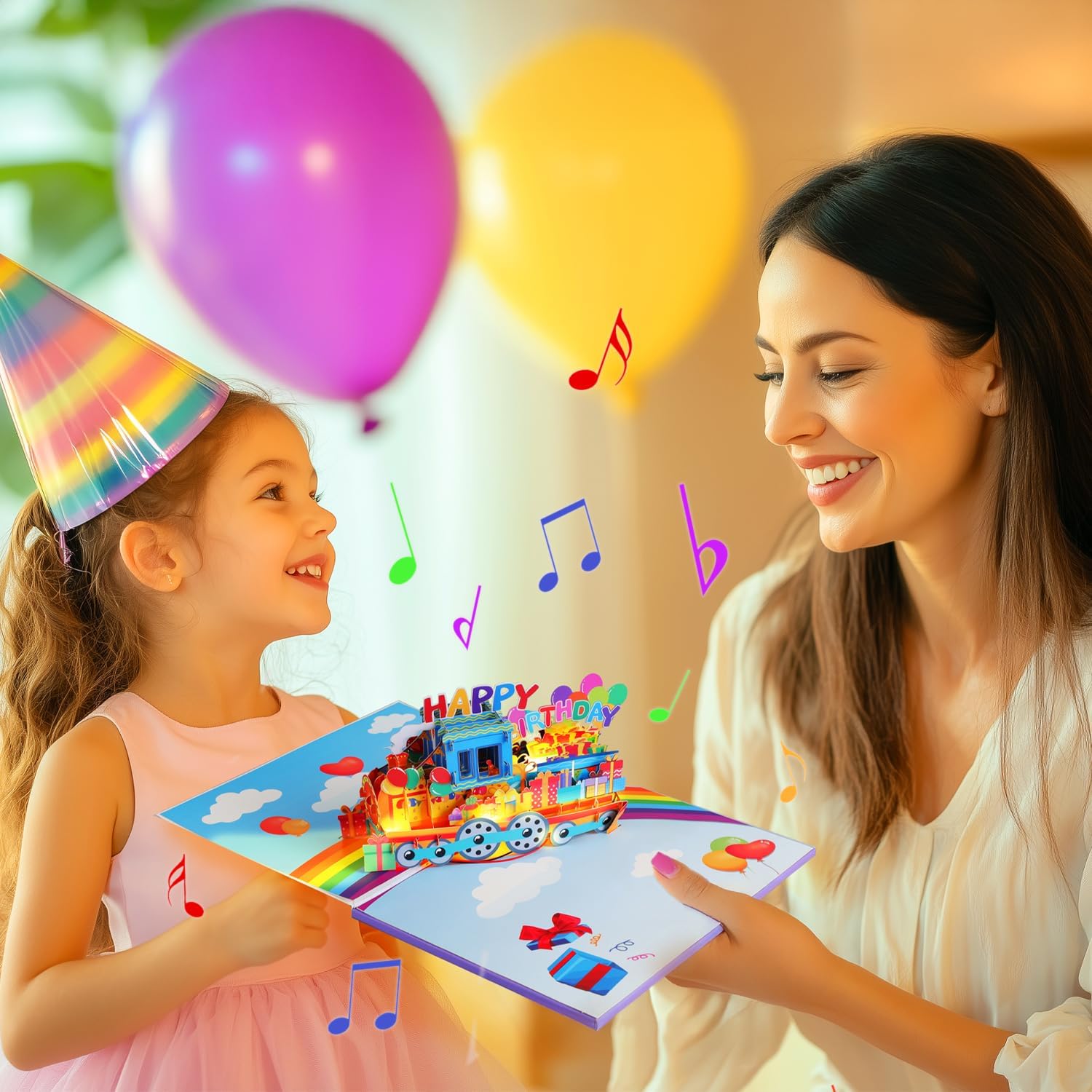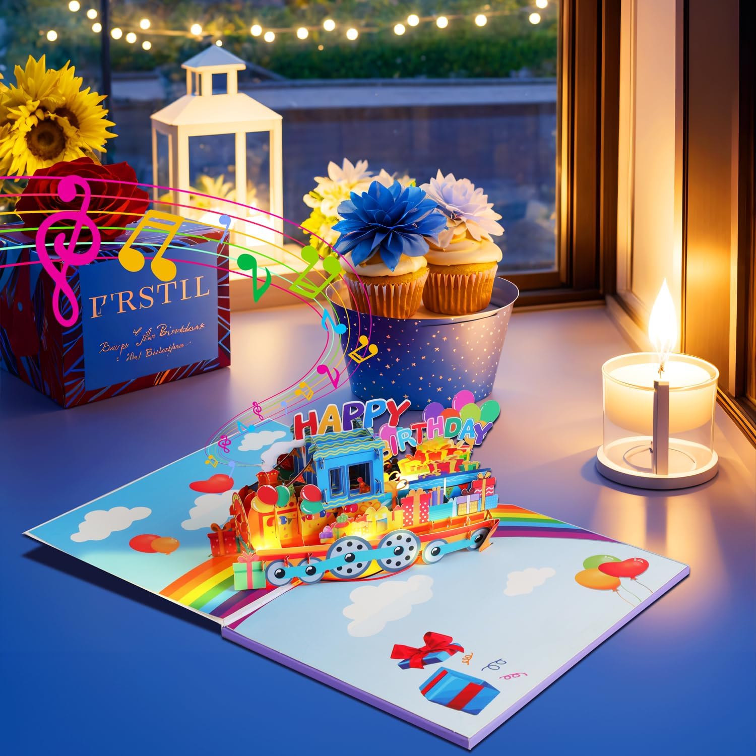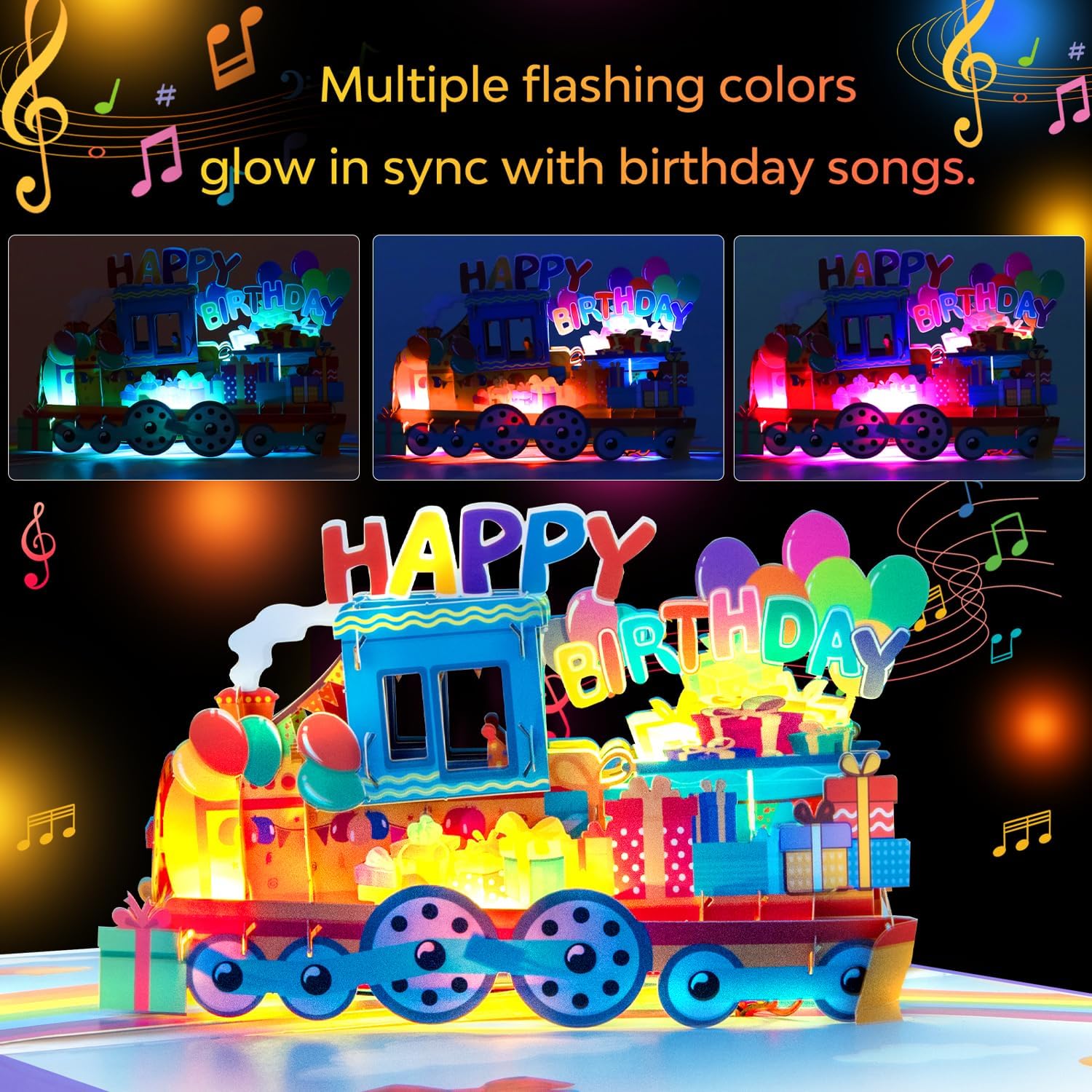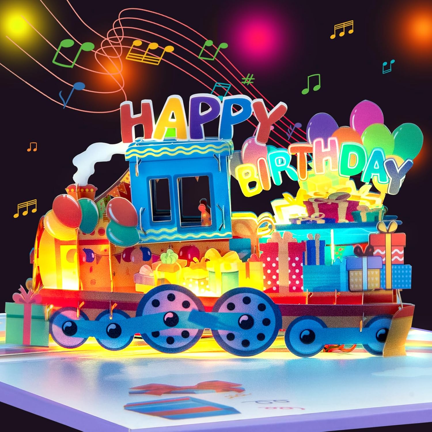 Sorprendi la persona amata con un vivace treno 3D pop-up decorato con regali colorati e scritte "Happy Birthday" - Il saluto perfetto per gli amanti dei treni Apri il biglietto per goderti l'allegra melodia "Happy Birthday to You" che viene riprodotta automaticamente, impostando il tono per una gioiosa festa di compleanno Guarda le luci all'interno del biglietto accendersi, aggiungendo un tocco emozionante e dinamico agli auguri di compleanno e creando un'esperienza memorabile. Le luci e la musica si accendono automaticamente quando il biglietto viene aperto e si spengono quando viene chiuso, senza bisogno di pulsanti. Ottimo per bambini piccoli, bambini in età prescolare, figli piccoli, figlie, nipoti, nipoti, nipoti e qualsiasi amante dei treni che adorerà un biglietto d'auguri divertente e interattivo. Include un biglietto vuoto per il tuo messaggio di compleanno personale e una busta per spedire facilmente, rendendolo il regalo perfetto per familiari e amici.