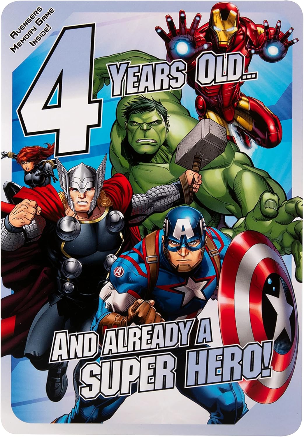 Augura loro un felice quarto compleanno con questo divertente biglietto di auguri - Avengers. Finiture: gioco di memoria Incluso: busta rossa Consegna Royal Mail: lettera di formato standard