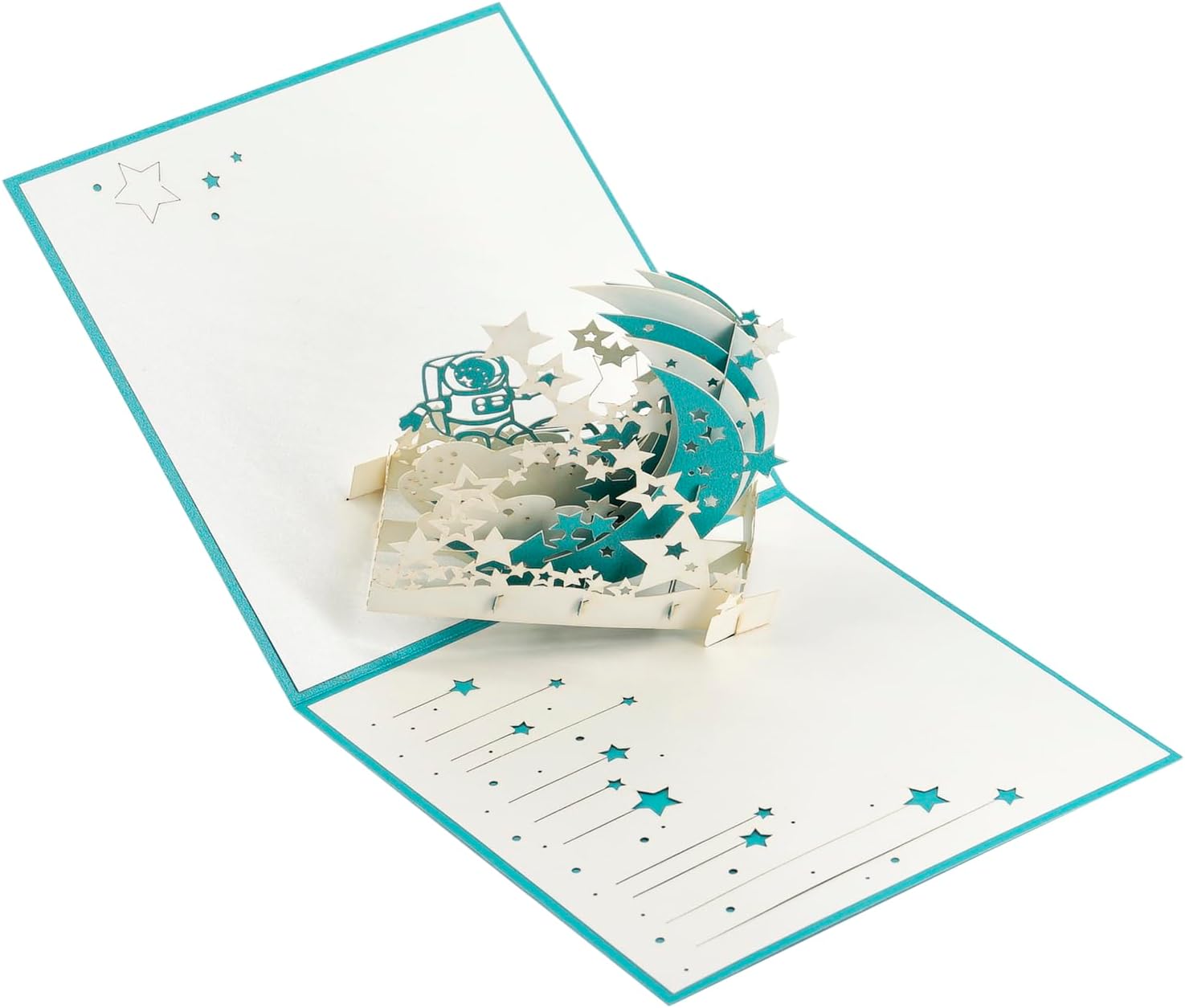 Incluso nella confezione: uno squisito biglietto di auguri pop-up 3D dall'accattivante design di un astronauta spaziale, accompagnato da una busta abbinata. PRODUZIONE ARTIGIANALE PREMIUM: Realizzato con la massima cura, questo splendido biglietto d'auguri pop-up per astronauta è meticolosamente stampato su cartoncino ecologico di alta qualità. Il risultato è una combinazione di durabilità, robustezza e un affascinante elemento di fascino. Innovativo design dell'incisione tridimensionale: questo biglietto di auguri presenta un design dell'incisione tridimensionale creativo e distintivo che è davvero accattivante. Una volta aperti, i dettagli finemente scolpiti prendono vita, emanando una bellezza mozzafiato. Il biglietto presenta un affascinante design cavo, che aggiunge un tocco di freschezza e bellezza al suo fascino generale. Uso versatile: questa carta è adatta a persone di tutte le età, rendendola un'ottima scelta regalo per amici e familiari. Che si tratti di anziani, bambini, familiari, colleghi o amici, con questo biglietto si possono esprimere gli auguri di compleanno o di vacanza. Serve come un modo perfetto per esprimere sentimenti sinceri ai tuoi cari, amici e colleghi. Pezzo decorativo squisito: il biglietto d'auguri pop-up dell'astronauta spaziale 3D può essere un'aggiunta straordinaria all'arredamento della tua stanza o esposto sullo scaffale. Il suo design complesso e la sua lavorazione unica lo rendono un bellissimo oggetto da collezione. Aggiungi un tocco di significato e significato al tuo biglietto di auguri presentandolo come un pezzo decorativo al destinatario.
