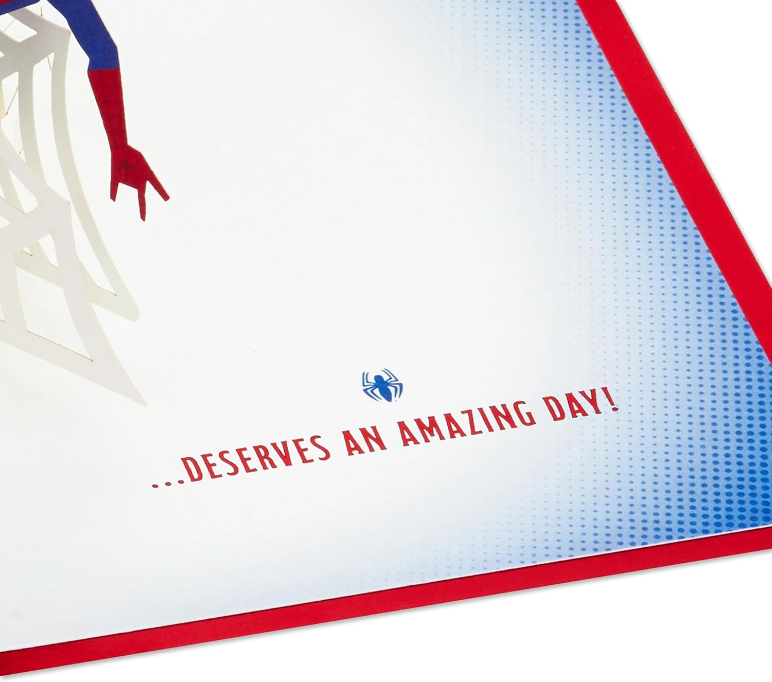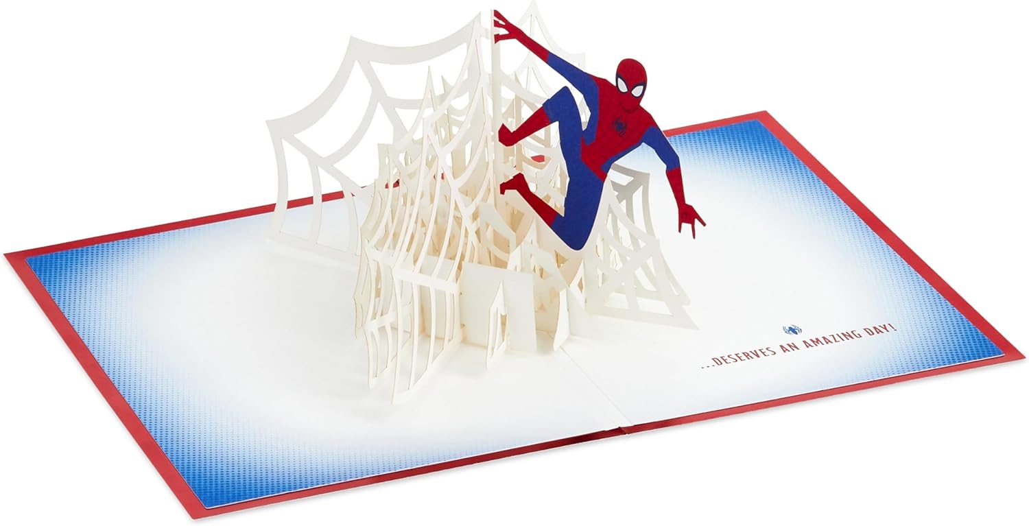 Biglietto Spider-Man per tutte le occasioni: entra in azione con il tuo supereroe preferito, con il biglietto pop-up 3D di Hallmark per ogni occasione, il regalo perfetto per fare un compleanno, una celebrazione Marvel e molto altro ancora. Biglietto pop-up 3D: basta aprire il biglietto per rivelare un display pop-up 3D di Marvel's Amazing Spider-Man con una pila di intricate ragnatele. Questa carta presenta dettagli metallici rossi e un design tagliato al laser. Carta premium completamente riciclabile: questa carta è completamente riciclabile e realizzata con materiali provenienti da foreste ben gestite, certificate FSC e altre fonti controllate. Messaggio ricco di azione: usa i tuoi sensi di ragno per scrivere il tuo messaggio epico da accompagnare al nostro messaggio a tema Spider-Man, "Qualcuno straordinario come te... serve una giornata fantastica!" e festeggia con il tuo supereroe preferito. Dimensioni: il biglietto piatto misura 17,2 x 11,9 cm e il biglietto costruito misura 9 cm x 23,8 cm x 17,3 cm. Accompagnato da una busta bianca con marchio Hallmark Signature con lamina rossa, entro i limiti delle dimensioni di spedizione "Lettera grande".