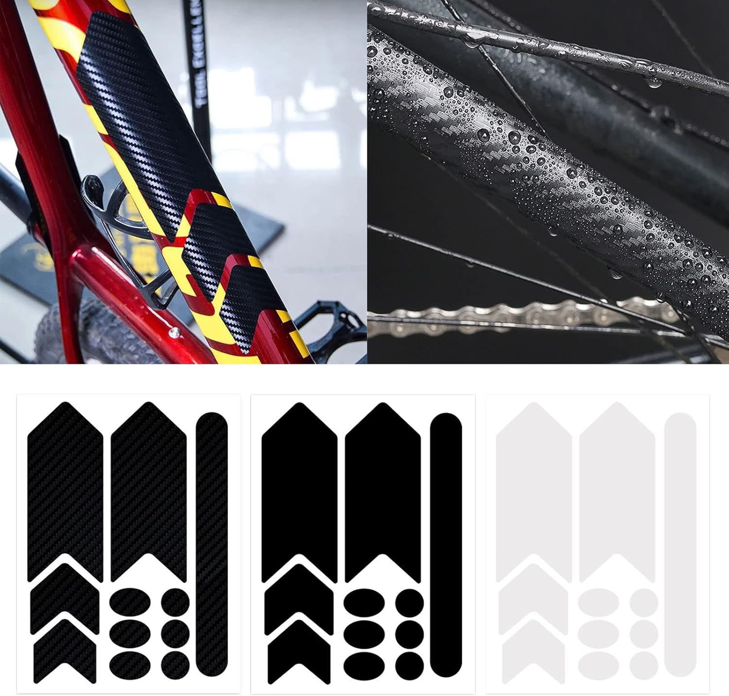 GRAFFIO, COLLISIONE. PVC e forte adesione, danno alla tua bici e una forte protezione, alta e non lascia segni Adesivo 1-2: si adatta al tubo superiore e al tubo inferiore del telaio; adesivo 3-4: si adatta alla forcella superiore e inferiore della bicicletta; adesivo 5: adatto per catene di biciclette; adesivo 6-11 applicabile ad altre parti del telaio PROTEZIONE. Il PVC resistente agli sfregamenti protegge la tua bici da graffi e ammaccature. Adesivo di grado automobilistico e non sbiadisce. Modelli e design unici disponibili per migliorare l'aspetto della tua moto Protezione per telaio bici multiuso. Queste protezioni per telaio della bici si adattano facilmente alla maggior parte delle mountain bike, bici da strada. Proteggono la tua bici da graffi, ammaccature, collisioni DIMENSIONE CORRETTA. Questo set di adesivi protettivi per telaio della bici è adatto per la maggior parte delle biciclette, mountain bike, bici da strada