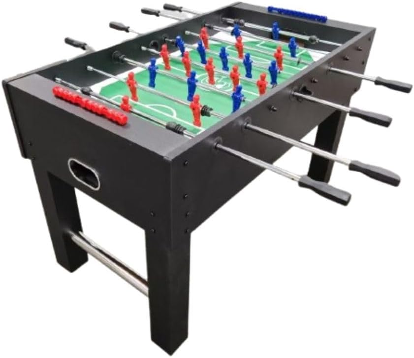 Questo calciobalilla è adatto per competizioni individuali o giochi di gruppo. Con questo calciobalilla da 121 cm avrete un calciobalilla professionale nelle vostre quattro mura. È molto divertente in qualsiasi ambiente - perfetto per giochi casalinghi, sale giochi e altre aree di intrattenimento Con questo biliardino da 121 cm avrai un calcio balilla professionale tra le tue quattro mura. Le dimensioni del campo di gioco stampato corrispondono allo standard ufficiale del torneo, che ti offre un'esperienza di gioco realistica