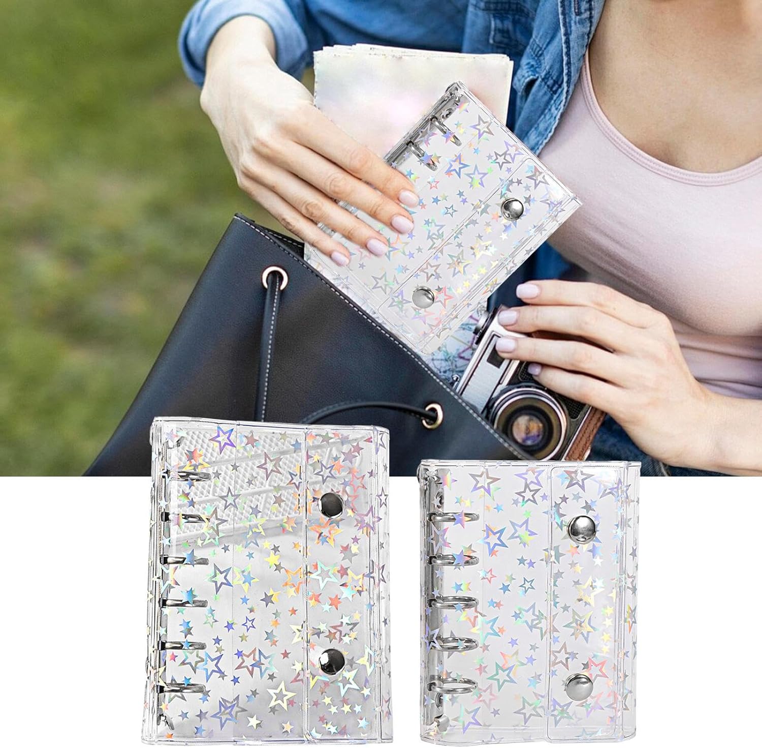 Gestione dei contenuti ottimizzati: soddisfare le diverse esigenze di archiviazione con una progettazione di leganti ad anello che consente un funzionamento senza sforzo, spessore regolabile in base ai requisiti e aggiunta flessibile o rimozione dei contenuti per un'organizzazione ottimale Design compatto e portatile: progettato con la portabilità in mente, la sua struttura leggera e compatta lo rende senza sforzo da trasportare, assicurando che si adatti perfettamente a sacchetti o tasche senza aggiungere massa durante il viaggio o le attività quotidiane Altre funzioni: riduce il disordine desktop con un approccio multifunzionale, fungendo da libro adesivo, supporto per carte e organizzatore di raccolta per garantire che gli articoli siano ben conservati nelle aree designate Presente squisito: regali ideali per bambini, ragazzi e ragazze per esprimere amore e cura di compleanni, festival, Natale o anno, creando ricordi gioiosi con leganti trasparenti pensierosi per i bambini Caratteristica di visibilità avanzata: il legante trasparente combina simpatici motivi a stelle e un effetto luminoso sotto la luce, garantendo una chiara visibilità dei contenuti, aumentando il fascino visivo generale per un tocchi decorativi ispirati