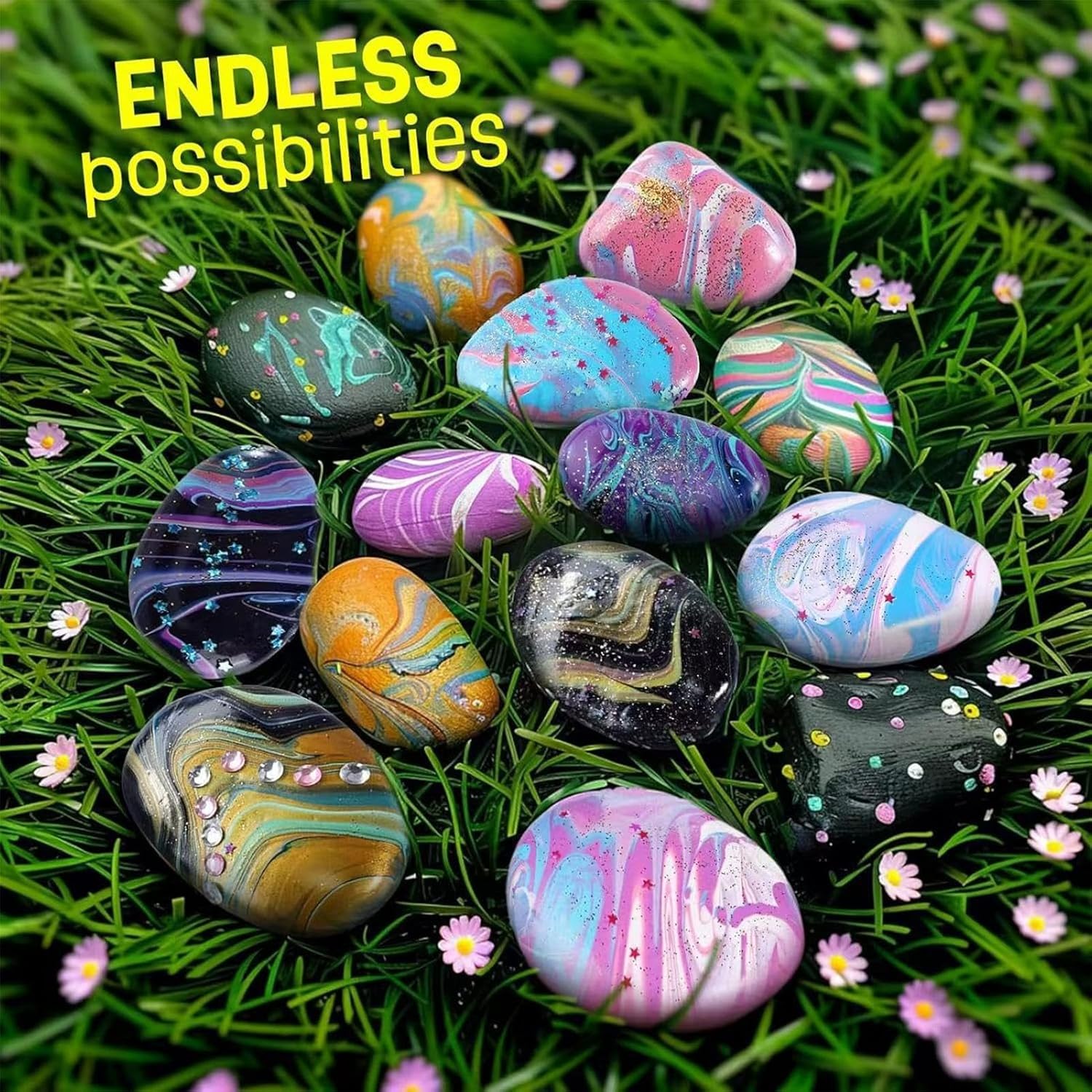 Dai vita alla tua arte: queste rocce fluviali sono infuse con pigmenti luminosi che daranno vita alla tua arte. Guarda come i tuoi disegni si illuminano al buio, creando splendidi motivi luminosi che ti lasceranno stupito. Libera la tua creatività con queste rocce e prova il fascino dell'ispirazione illuminata iniziata da Una volta che le luci sono spente per rivelare un design mozzafiato Divertente per tutti: adatto per bambini dai 6 agli 8 anni e appassionati di pittura su roccia di tutte le età; viene fornito con vernici sicure e impermeabili, ideali per il fai da te. Viene fornito con vernici impermeabili per nessuna preoccupazione fai da te Divertimento assicurato: libera la tua creatività con le nostre rocce River Rocks per la pittura. Prova la gioia di creare capolavori unici con queste pietre lisce, ideali per bambini e adulti. Il nostro kit include vernici resistenti alle intemperie, consentendo ai tuoi disegni di resistere agli elementi e di essere invisibili all'aperto per sorprese extra Regalo pratico: incoraggia più espressione artistica e immaginazione con queste rocce fluviali lisce per la pittura, rendendole un regalo creativo ideale per bambini, ragazzi e ragazze in occasioni speciali come compleanni, Natale, Halloween e Pasqua. Non sono solo divertenti, ma un'idea regalo pratica per rilasciare artisti interiori Ampio utilizzo: ideale per scuole, campi estivi, gruppi di artigianato o corsi d'arte, garantendo un'ampia adattabilità e una maggiore creatività, coltivando abilità artistiche e promuovendo più possibilità