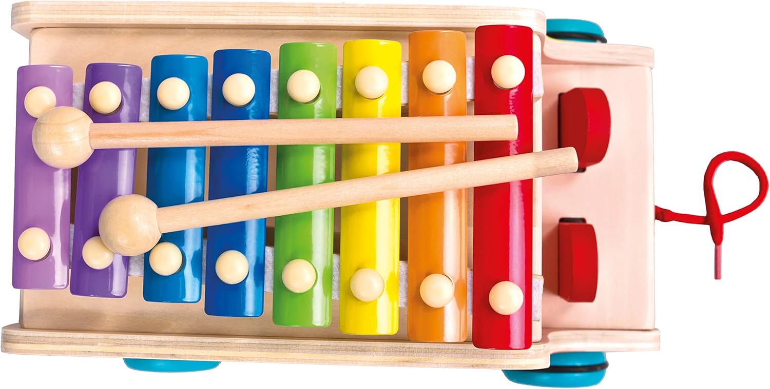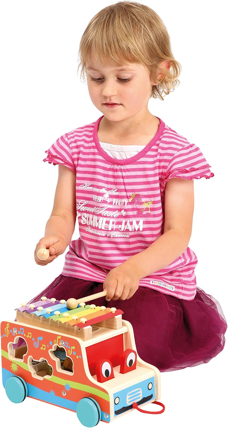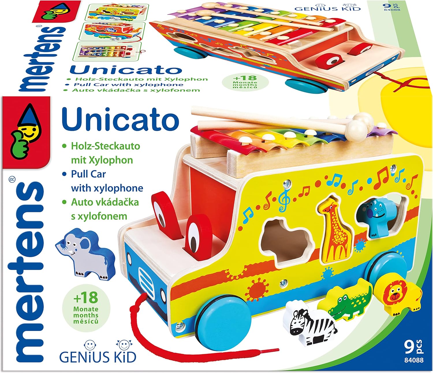Giocattolo multifunzione per apprendere diverse abilità! 1. un giocattolo trainabile che aiuta i bambini a fare i primi passi e ad esercitare l'equilibrio. 2. i fori nella macchina per dividere i passeggeri/le forme di diversi animali aiutano a sviluppare l'intelletto e il ragionamento logico, nonché ad allenare le capacità motorie. 3. Grazie ad un design sofisticato e al funzionamento del giocattolo, i bambini imparano a riconoscere i principali colori e animali. 4. lo xilofono con 8 toni e due bacchette sul tetto della macchinina dà ai bambini la possibilità di conoscere le basi della musicalità e di sviluppare il loro talento musicale. Dimensioni: 24 × 13.5 × 18.5 cm - età consigliata: 18m +