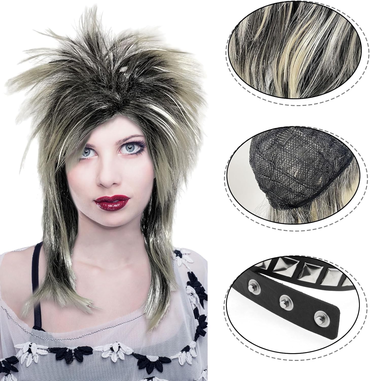 PARRUCCA PUNK ROCKER ANNI '80: l'elegante acconciatura punk o rock retrò degli anni '70 o '80 è una parrucca lunga e soffice, che ti consente di ridisegnare e cambiare il tuo look senza sforzo. La parrucca da rocker è un'aggiunta meravigliosa per le feste in maschera nelle feste a tema anni '60, '70 e '80 MATERIALE AFFIDABILE: è realizzato in fibra sintetica di alta qualità, odore sicuro e non irritante, liscio sulle superfici, affidabile e riutilizzabile, puoi usarlo con facilità e sicurezza, vieni a creare il tuo stile, adatto alla maggior parte degli adolescenti e delle persone COSTUME TRAVESTIMENTO DA UOMO: Trasforma il tuo look in un istante con una di queste parrucche da boyband per adulti dall'aspetto favolosamente autentico, goditi la sensazione che cattura davvero l'essenza dei tuoi idoli rock preferiti degli anni '80, diventa un altro personaggio AMPIA OCCASIONE: La parrucca Rocker Punk anni '80 può essere utilizzata tutto l'anno, sia per costumi, moda o semplicemente per divertimento, adatta per cosplay, feste, carnevale, feste in maschera, feste musicali, Halloween, palcoscenici, compleanni, uso quotidiano e qualsiasi altre occasioni REGALO ADEGUATO: La parrucca e il girocollo in costume in maschera possono essere ben applicati in molte occasioni, attraenti e alla moda, aggiungendo un'atmosfera divertente, adatti a tutte le feste in maschera, cosplay e spettacoli teatrali, sono ottimi regali
