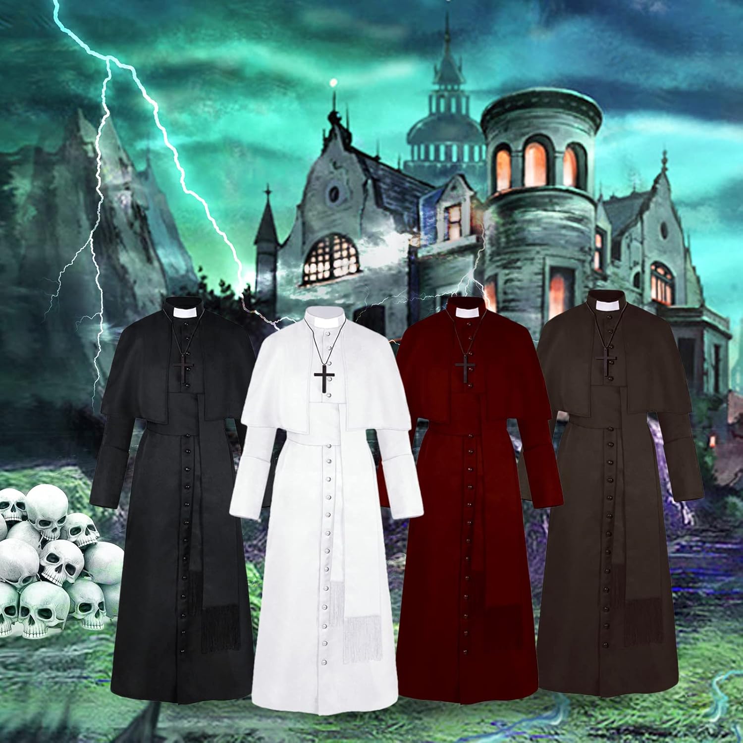 1. Il costume da prete è realizzato in morbido poliestere di alta qualità ed è comodo da indossare e da toccare. 2. Questo costume da prete con collana a croce è uno dei modi più semplici per creare un'atmosfera spettrale di Halloween. 3. Facile da indossare e da togliere. Vari colori a tua scelta, puoi scegliere il colore che ti piace. 4. Il lungo costume da prete è adatto per il divertimento in famiglia e una buona decorazione per una festa. 5. Perfetto per costumi di scena di vampiri, reali, costumi di Halloween, giochi di ruolo e altro ancora.