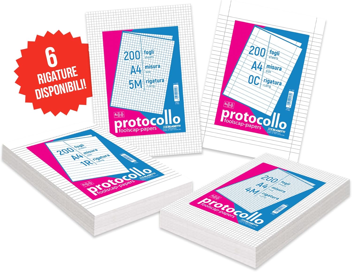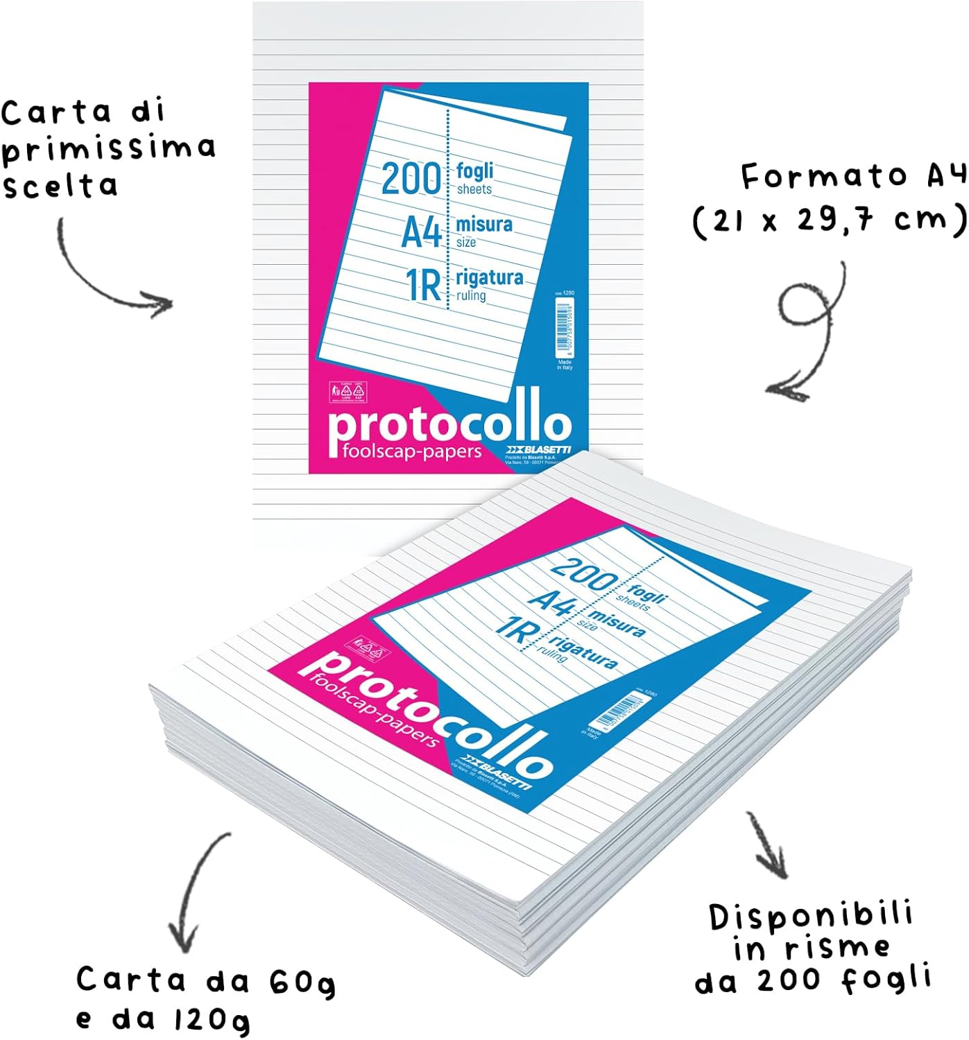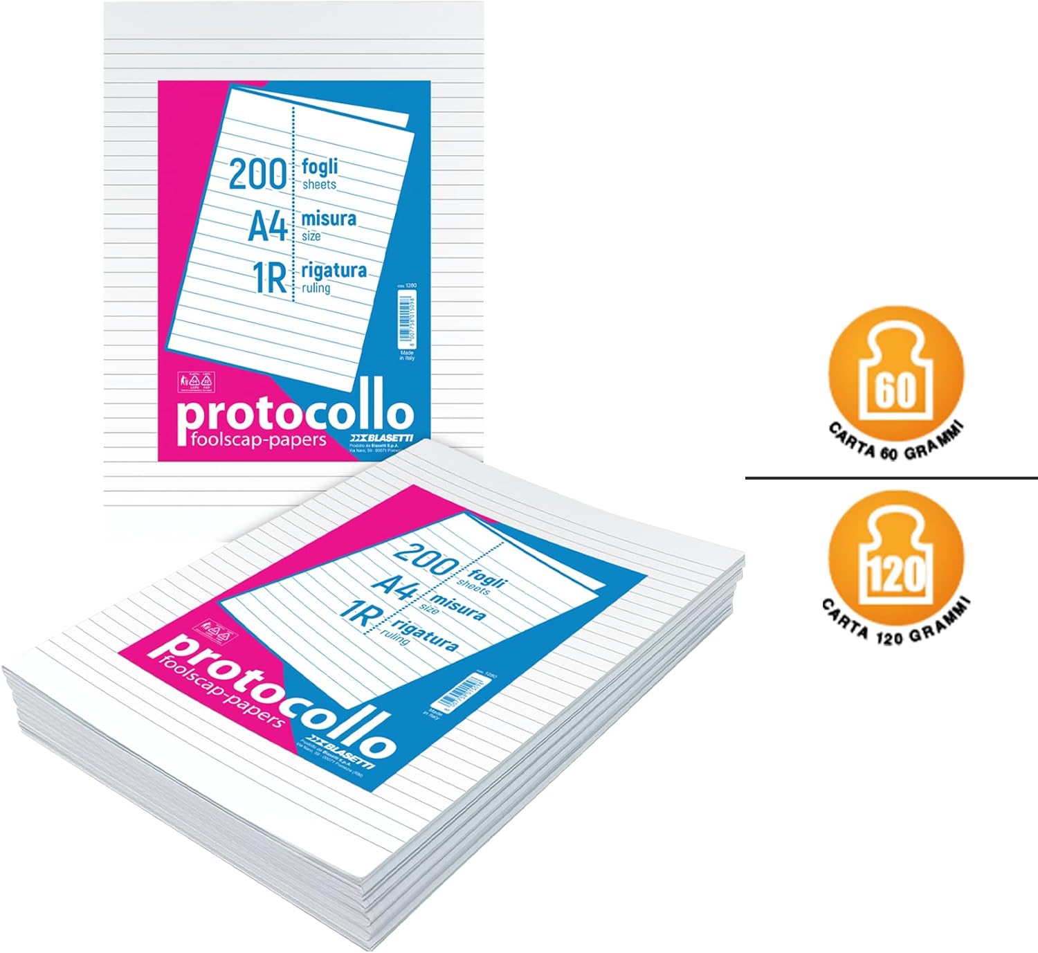 Formato: Il formato A4 (21x29,7 cm) è perfetto per un’ampia area di scrittura, ideale per professionisti che necessitano di spazio sufficiente per appunti dettagliati e report. Fogli: Ogni Risma contiene 200 fogli, offrendo una scorta sufficiente per le necessità quotidiane di lavoro, studio o per organizzare note e documenti. Carta: Con un peso di 60g, la carta è leggera ma resistente, evitando sbavature con penne a sfera, matite o pennarelli e garantendo un’esperienza di scrittura fluida. Rigatura: 5M Utilizzo: Questi fogli sono ideali per professionisti, studenti e chiunque necessiti di scrivere appunti, report o documenti formali in modo pratico e ordinato.