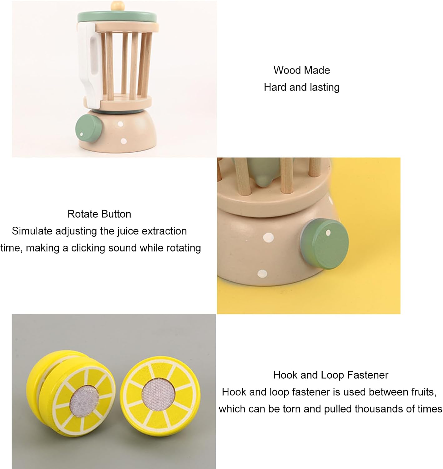 Attività di legame familiare: promuove l'interazione genitore-figlio attraverso lo sviluppo di comunicazione e abilità sociali condivise. Compagni da cucina per giochi di ruolo: per scenari di cucina fantasiosi, incoraggiando i bambini piccoli a imitare le attività di cucina per adulti con pezzi di frutta sicuri e grossi. POECHIO EDUCATIVO COMPACT: il set non richiede assembly, pronto per il gioco immediato nelle aule domestiche o negli ambienti di apprendimento. Esperienza di apprendimento interattivo: sviluppa belle capacità motorie e coordinamento per gli occhi manuali mentre i bambini praticano frutti e gestiscono il meccanismo del frullatore. Giocattolo per spremiagrumi in legno: realizzato in legno con bordi lisci, questo finto spremiagrumi include 9 blocchi di frutta colorati per il gioco di schiacciamento e miscelazione.