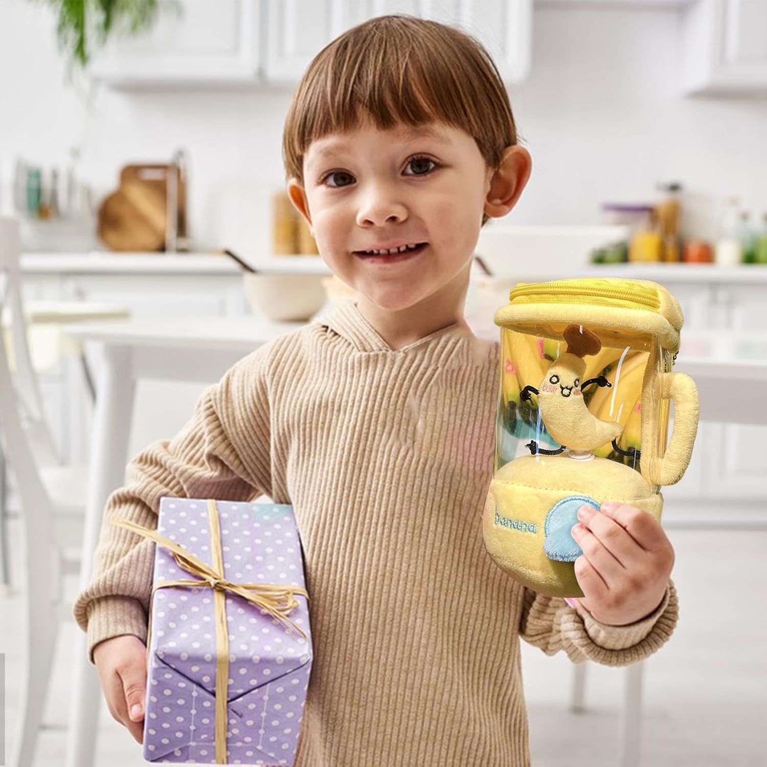 Interactive Rotating Feature: Designed with a fun pull-string mechanism that makes the blender blades spin inside the plush, offering a playful and engaging experience that sparks imagination in kids and adults Fruit-Themed Stuffed Design: Includes cute, colorful fruit inside the blender toy, promoting creative farm-to-table storytelling and adding vibrant charm to any playroom or nursery space Soft and Huggable Material: Made from ultra-soft, child-safe fabric for cuddling and comfort, this plush toy is perfect for bedtime snuggles, gentle play, or display on shelves and beds Fun for All Ages: A unique collectible for kids, plush lovers, and adults who enjoy novelty toys, making it a perfect gift for birthdays, holidays, or as a quirky decoration for nurseries or offices Great Gift for Toy Enthusiasts: Combines cuteness, interactivity, and imaginative play in adorable package, appealing to both children and collectors who appreciate themed plush creations