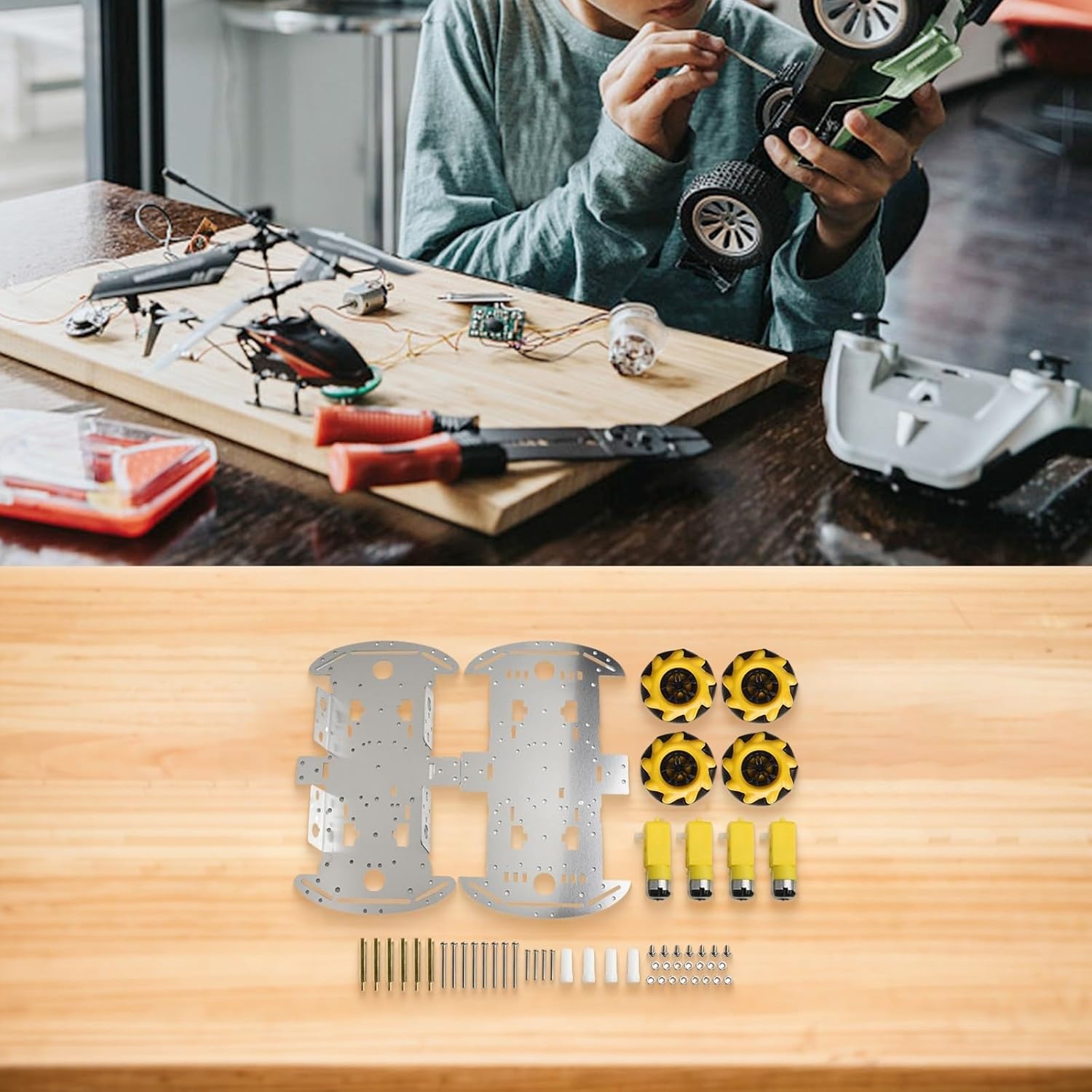 [Spazioso doppio telaio] L'innovativo design a doppio telaio di questo kit per auto Mecanum Wheel Car offre ampio spazio e opzioni di montaggio per sensori e moduli per espandere le sue capacità. [MOVIMENTO OMNIDIREZIONALE FLESSIBILE] Con quattro ruote mecanum, questa auto robot può muoversi senza problemi in tutte le direzioni senza bisogno di girare, rendendola perfetta per navigare in spazi ristretti o layout complessi. Robuste e rumorose: realizzate in plastica ad alta durezza, le ruote per mecanum sono costruite per resistere all'usura durante il funzionamento silenzioso, un'esperienza utente fluida in vari ambienti. [Coinvolgente esperienza educativa] Questo kit è un fantastico strumento educativo che offre ai principianti ed esperti l'opportunità di approfondire la loro comprensione dell'elettronica e della robotica attraverso un impegno pratico. [FACILE INTEGRAZIONE CON PIATTAFORMA] Il kit è progettato per integrarsi senza sforzo con PI o sistemi, consentendo agli utenti di sperimentare funzioni come tracciare percorsi o evitare ostacoli.