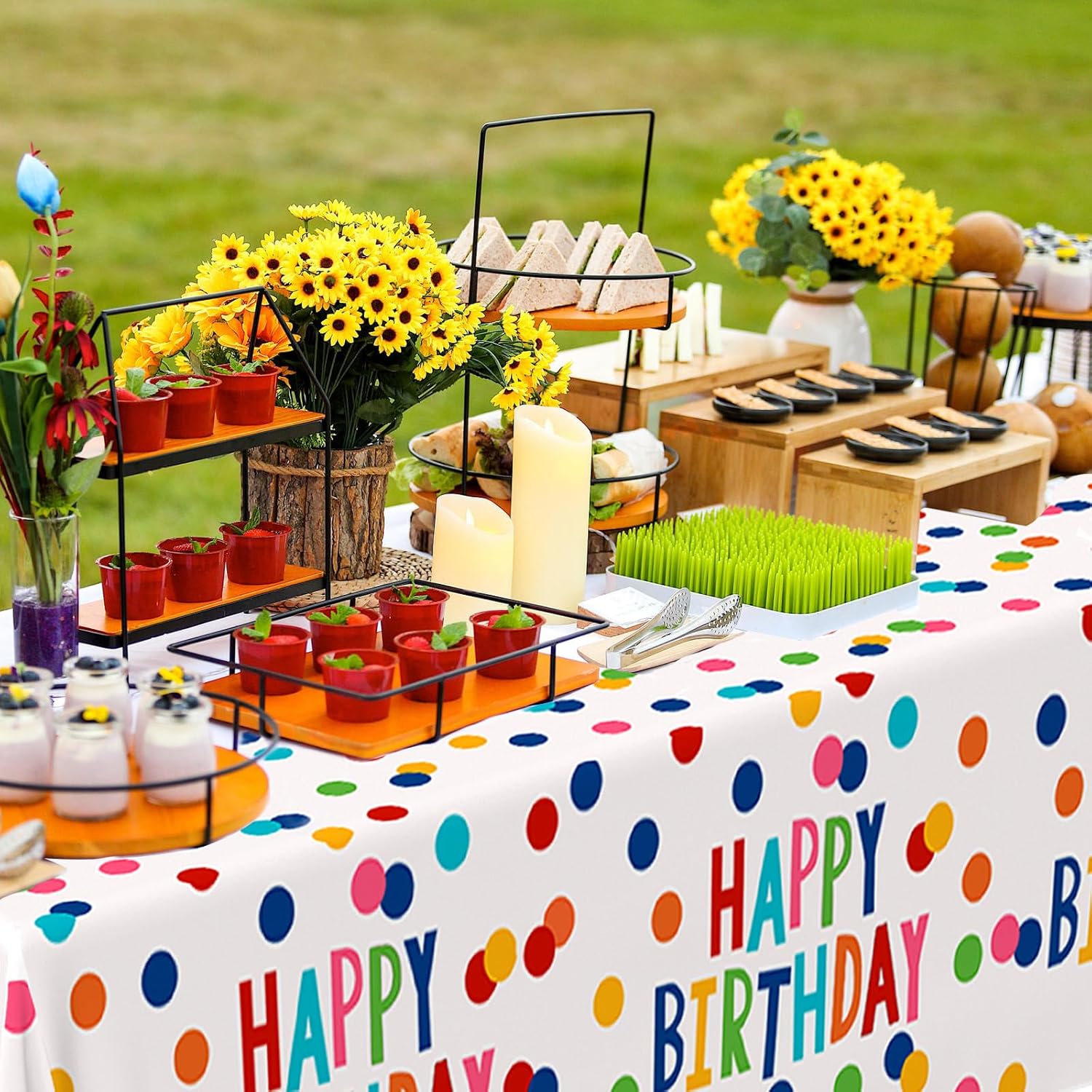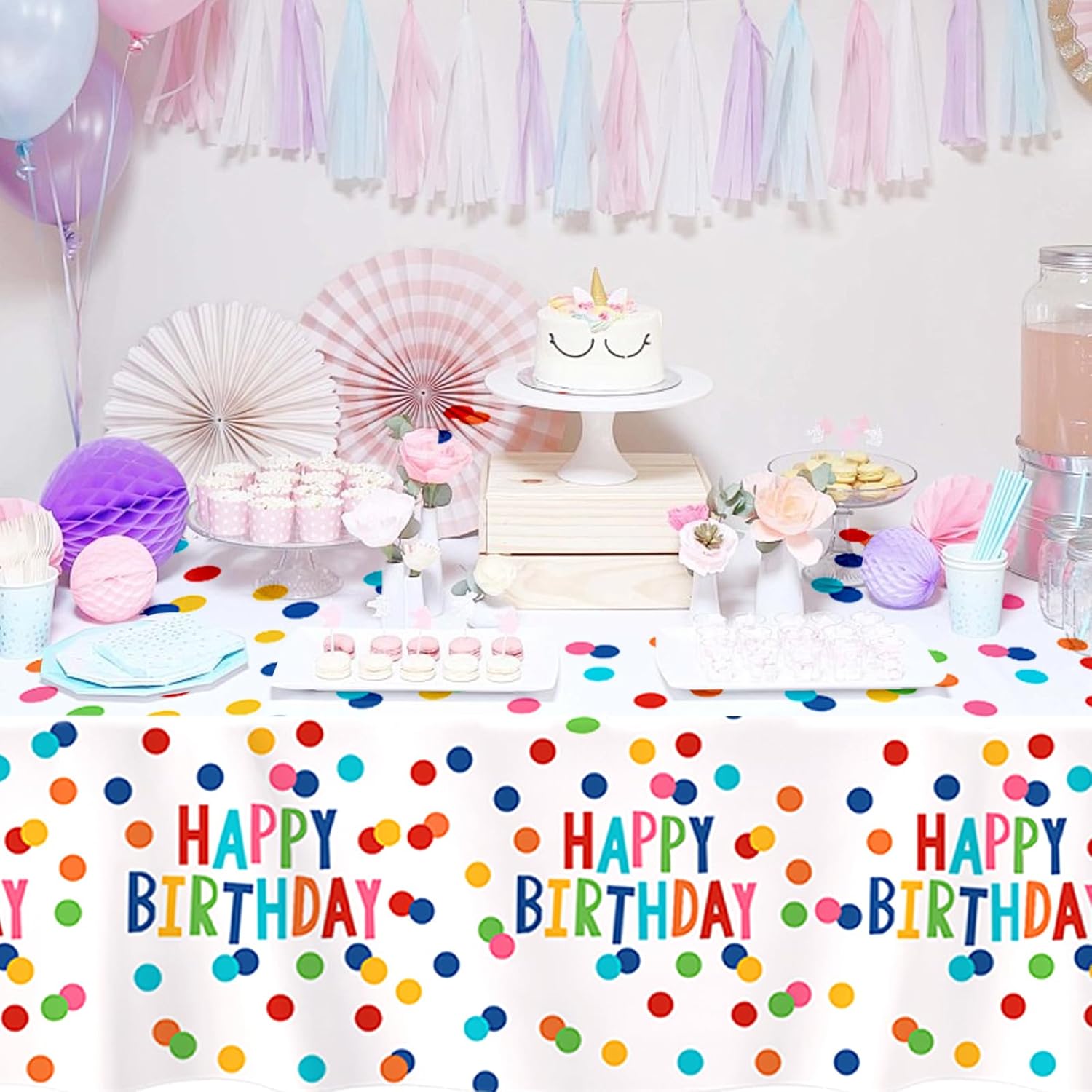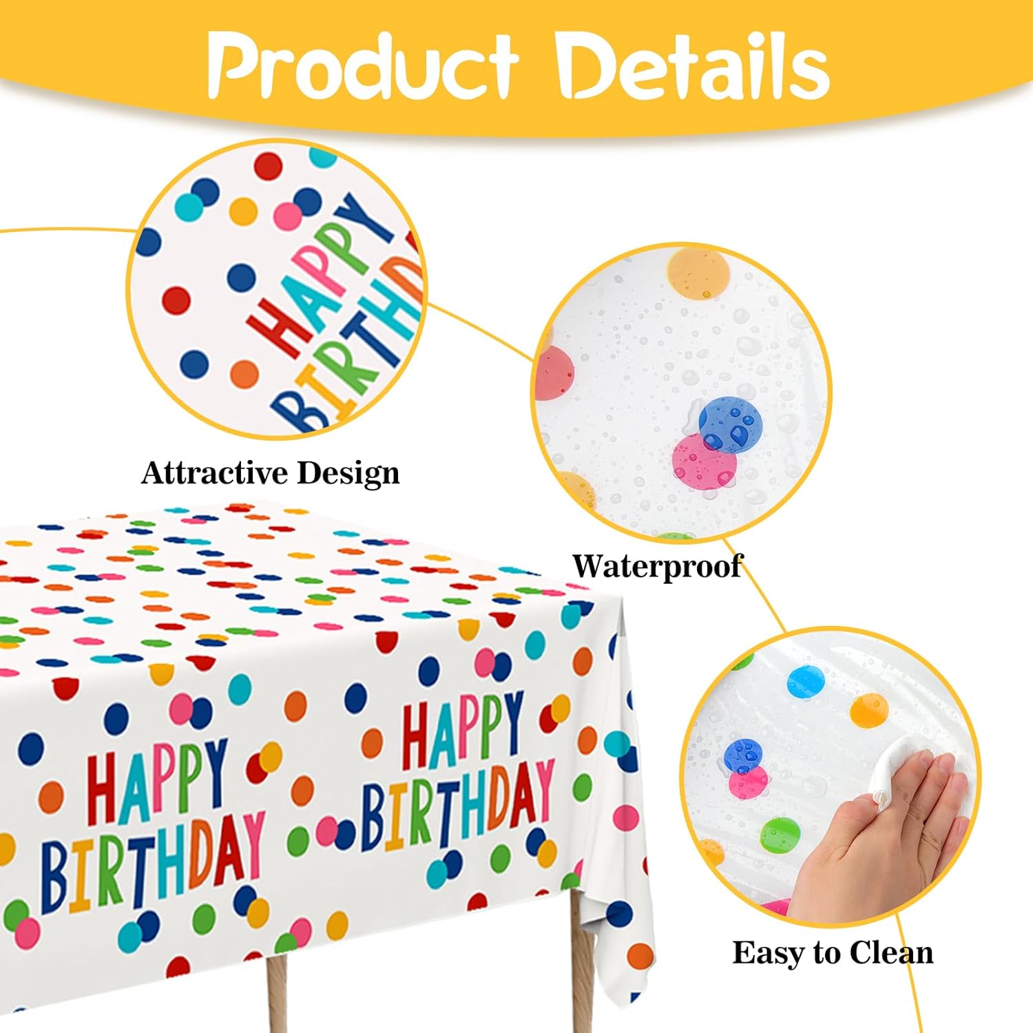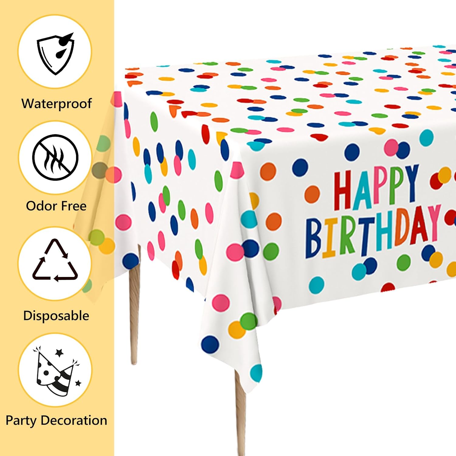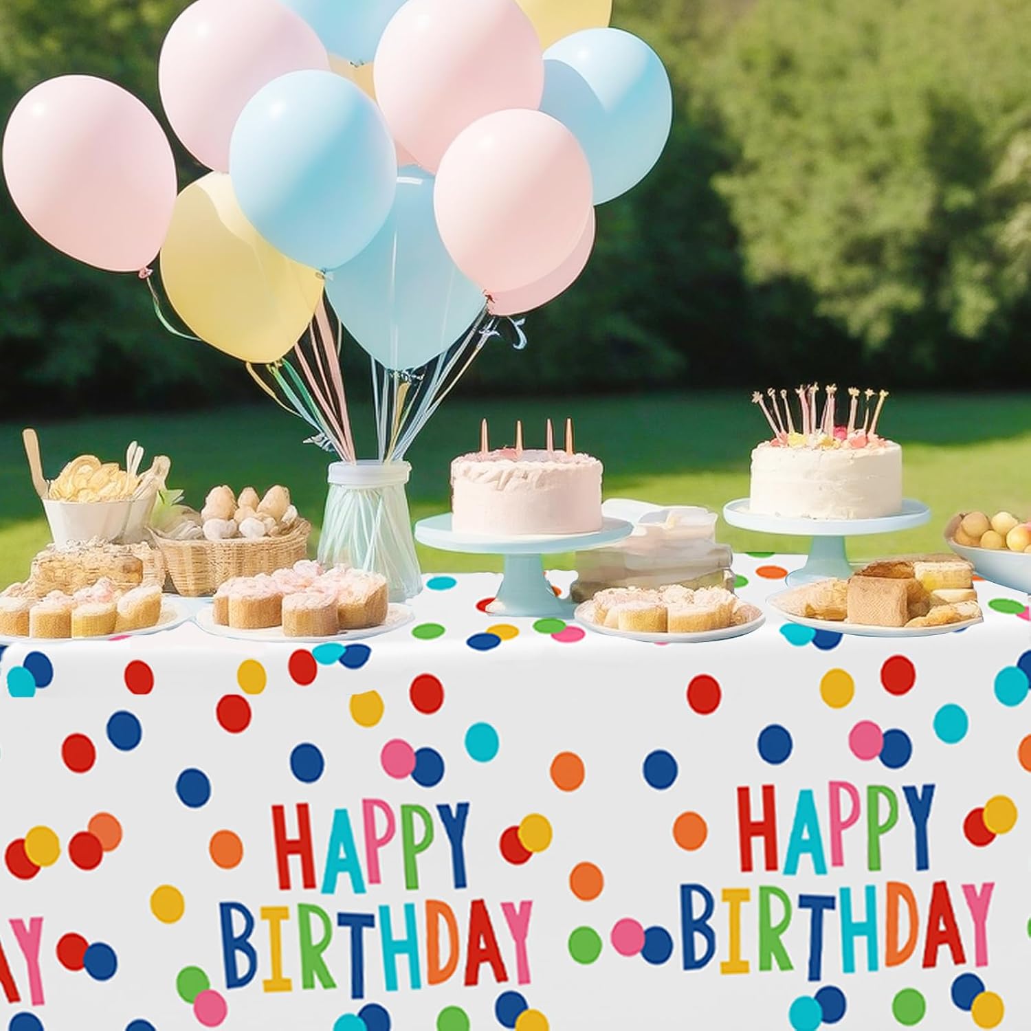 Contenuto della confezione: riceverai 2 tovaglie usa e getta di alta qualità, ognuna misura 274,3 x 137,2 cm. Dimensioni per adattarsi alla maggior parte dei tavoli da festa standard, assicurando che i tuoi tavoli siano fantastici e rimangano protetti durante tutto l'evento Per uso alimentare ed ecologico: realizzate con materiali plastici per alimenti, le tovaglie per compleanni offrono tranquillità, consentendo di posizionare gli alimenti direttamente su di esse senza preoccupazioni. Sebbene monouso, sono fatti per essere abbastanza robusti per essere riutilizzati se lo si desidera Comodo da usare: dite addio al fastidio di pulire dopo una festa. Basta stendere la tovaglia usa e getta per feste sul tavolo prima dell'evento. Quando la festa è finita, raccoglieteli con tutto il disordine e smaltirli facilmente, risparmiando tempo e fatica Design speciale: le nostre tovaglie di compleanno presentano un design vivace e accattivante, il loro look colorato e festoso aggiunge un tocco di fascino ed eccitazione a qualsiasi festa di compleanno o baby shower, diventando un punto focale che migliora il tema decorativo generale del tuo evento Ampia gamma di applicazioni: la tovaglia in plastica di buon compleanno è ideale per feste di compleanno, baby shower e altre celebrazioni. Il loro materiale impermeabile e resistente li rende adatti sia per uso interno che esterno, sia che tu stia organizzando una piccola riunione a casa o una grande festa in giardino o sala banchetti