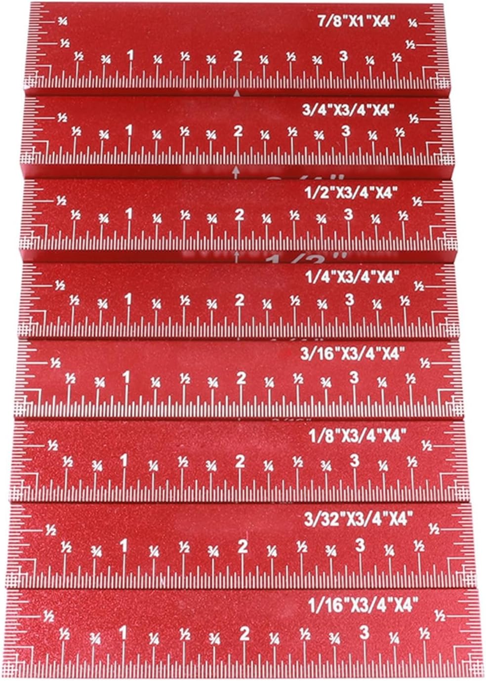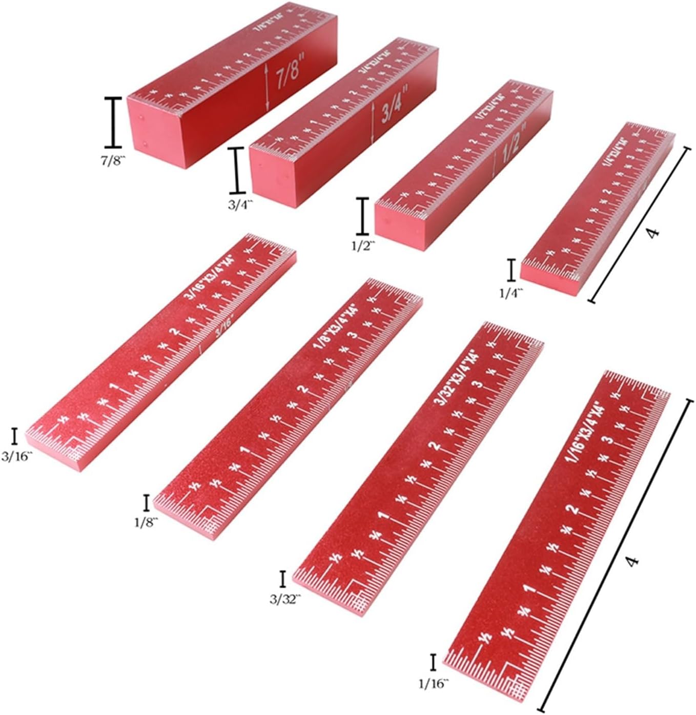 I blocchi di installazione possono facilmente impostare l'altezza della recinzione, delle punte delle lame e di altre frese in base alle esigenze, il che è più rapido e preciso rispetto all'utilizzo di un righello combinato. Combina le barre per impostare centinaia di misurazioni. Impila le barre di configurazione per un'ampia variazione o dimensioni, oppure usale da sole, lavora e misura rapidamente. I blocchetti di misura installati sono tutti lunghi 4 pollici extra. Dimensioni precise del set di blocchetti di riscontro: 1/16", 3/32", 1/8", 3/16", 1/4", 1/2", 3/4", 1x8/7x4". Etichette incise di facile lettura su ogni blocco. Custodia adatta inclusa, quindi il quadrato combinato sarà più protetto durante il trasporto. Blocchi da 8 pezzi Solida costruzione in alluminio anodizzato nero per proteggere meglio frese e seghe.