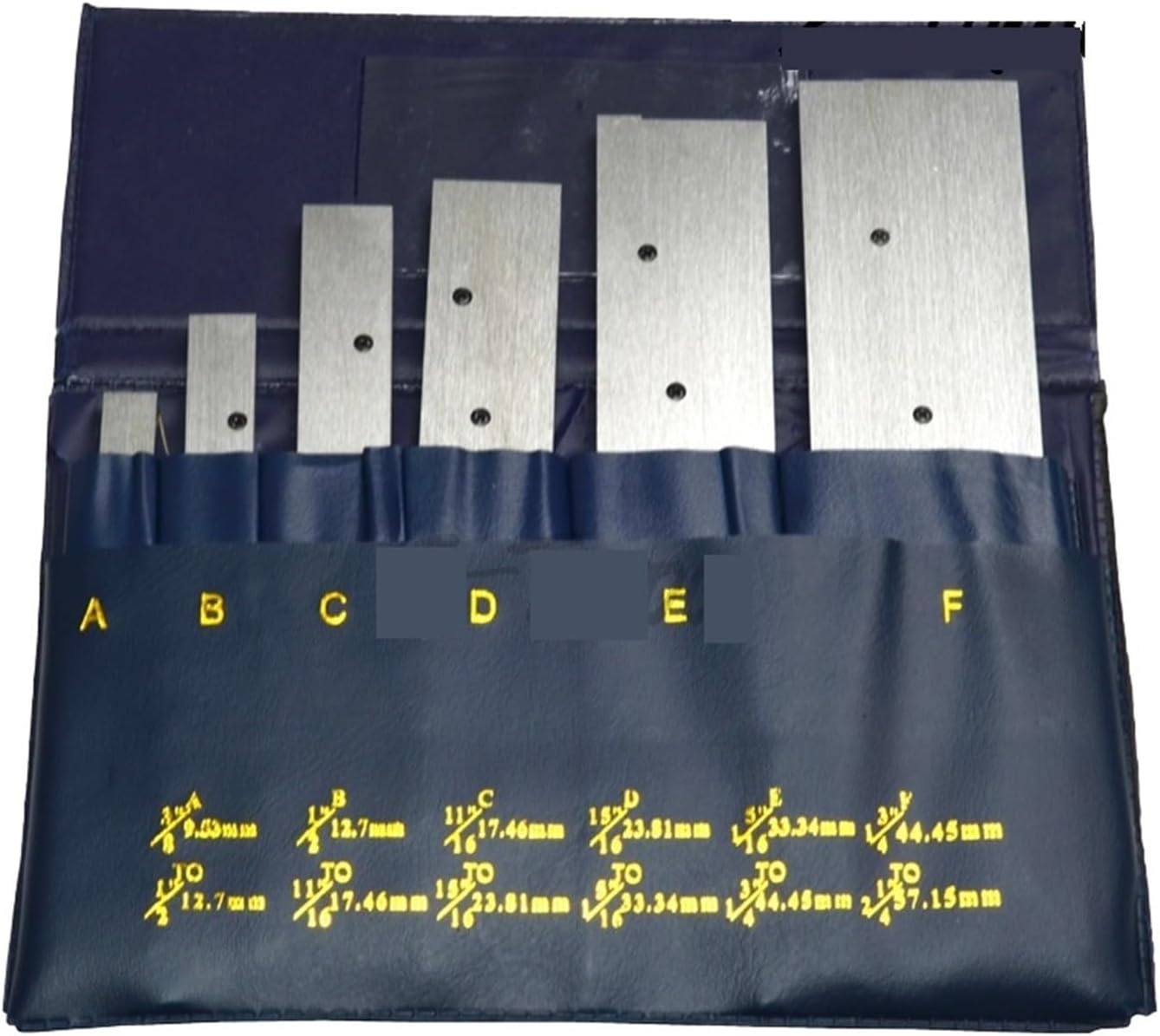 Dimensioni: 3/8"-1/2",1/2"-11/16",11/16"-15/16",15/16"-1-5/16",1-5/16" -1-3/4",1-3/4"-2-1/4". Tolleranza delle dimensioni: ±0,0005". Parallelismo: 0,0004" Materiale: realizzato in acciaio per utensili di alta qualità antistress contro la distorsione, rettificato di precisione e temprato. Applicazione: facile da usare nel bloccaggio di precisione di parti in foratura, fresatura, stampaggio, lavori di assemblaggio, ecc. Facile da riporre: il set viene confezionato in una borsa per riporlo, proteggerlo e trasportarlo facilmente. Confezione: blocchi paralleli da 6 pezzi.