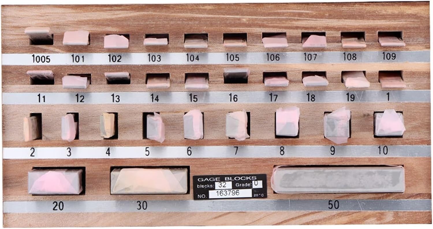 Dimensioni: 1,005~50 mm. Materiale: realizzato in acciaio per utensili di alta qualità antistress contro la distorsione, rettificato di precisione e temprato. Applicazione: facile da usare nel bloccaggio di precisione di parti in alesatura, fresatura, stampa, lavori di assemblaggio, ecc. Facile da riporre: il set viene fornito imballato in una custodia di legno per una facile conservazione, protezione e trasporto. Confezione: blocchi da 32 pezzi.