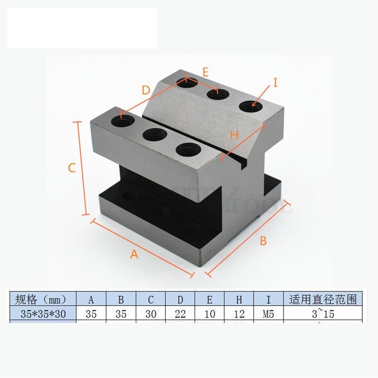 Dimensioni: 35x35x30mm. Dimensione di serraggio del gambo: 3-15 mm. Utilizzare acciaio per utensili completamente temprato e rettificato. HRC52-58 I blocchi a V sono paralleli, quadrati e centrati entro 0,0002". Perfetto per macchinisti, falegnami, metalmeccanici e altro ancora. Imballato in cassa di legno.