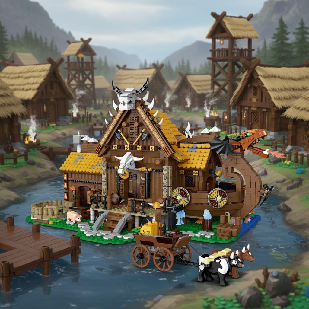 【Immergiti nell'era nordica dei vichinghi per adulti!】 Questo dettagliato modello di casa in legno con blocchi di bloccaggio con draghi, cavalli, porcile e carro trainato da buoi riporta in vita l'epoca. Un set perfetto per adulti che delizierà gli appassionati di architettura e storia. 【Scopri interni caldi con un'illuminazione magica】 Aperto rivela una scena piena di vita: vino, cibo, falò e una cantina segreta. Le parti che emettono luce migliorano l'atmosfera. Questo edificio modulare offre un'esperienza di costruzione modulare unica per costruttori adulti. 【Progetta il tuo paesaggio stradale con libertà creativa】 Costruisci in modo creativo e incorpora la casa come un pezzo decorativo o da collezione unico che mette in risalto il tuo stile. Ideale per uomini adulti e appassionati di costruzioni che desiderano espandere la propria collezione cittadina. 【Regalo ideale per gli appassionati di architettura per adulti】 Perfetto per gli adulti che amano l'architettura e le scene di strada, sia per un compleanno, Natale o altre occasioni. Un must per i fan del MOC! Il regalo perfetto per gli adulti in occasioni speciali. 【Facilità di montaggio e massima qualità delle morsettiere】Istruzioni chiare, parti ordinate passo dopo passo. Blocchi di costruzione in ABS di alta qualità, lisci e facili da impugnare. Un kit per adulti di alta qualità per costruttori adulti esigenti.