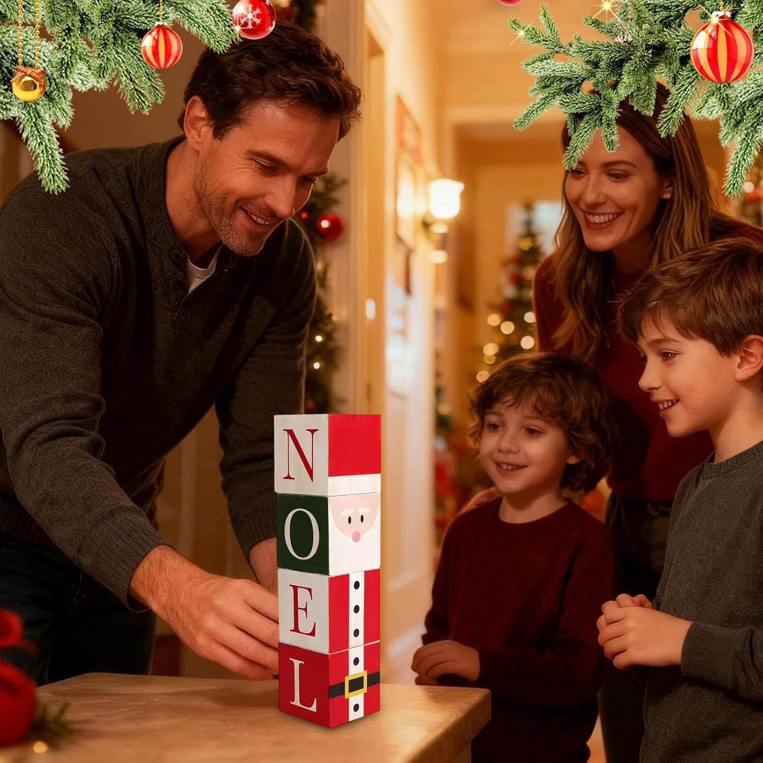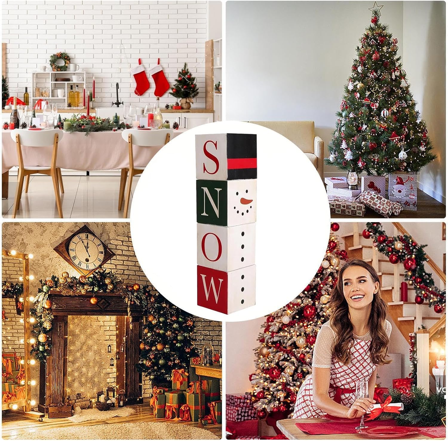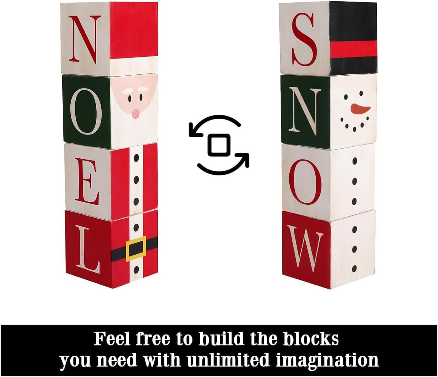 【Design natalizio festivo】 L'arredamento natalizio in blocchi presenta un design ispirato al Natale che crea una ricca atmosfera festosa, migliora l'atmosfera vacanziera e aggiunge un fascino allegro a ogni occasione, perfetto per decorare case, uffici o eventi di feste durante il periodo natalizio. Decorazione natalizia calda e strutturata: con materiali naturali, accuratamente realizzati a mano in ogni pezzo, questo arredamento natalizio in blocchi di legno emana un'accogliente atmosfera rustica, fornisce un tocco morbido e arricchisce qualsiasi casa con un'atmosfera festosa e senza tempo. e ruota completamente, mostrando motivi festivi dettagliati in qualsiasi direzione per creare un'esperienza visiva accattivante su tavoli da pranzo, scrivanie o espositori stagionali. occasione