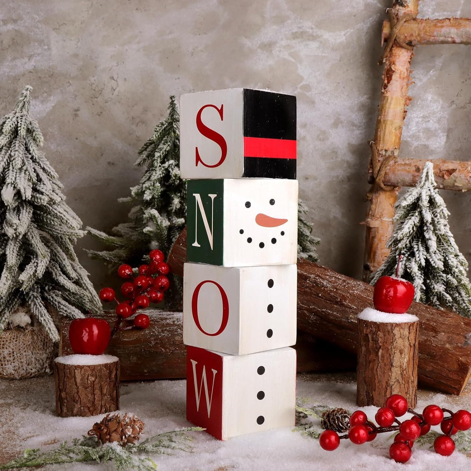 Molteplici possibilità di posizionamento: questi blocchi di stazioni natalizie offrono numerose possibilità di posizionamento e sono ideali come decorazioni festive per il caminetto, l'ingresso, la scrivania o il soggiorno. Aumentano l'atmosfera natalizia e si adattano armoniosamente a diversi stili di interni grazie al loro design flessibile. Con il loro design adattabile, completano qualsiasi ambiente abitativo e diffondono l'allegria natalizia in ogni stanza della tua casa per opzioni di esposizione versatili: il cubo di Natale è dotato di incisione fronte-retro e di una funzione di rotazione a 360 gradi, che consente di presentare in modo ottimale i motivi festivi da più angolazioni. Questa caratteristica consente un posizionamento flessibile su tavoli, scaffali o panche da caminetto durante le vacanze di Natale, permettendone l'utilizzo in luoghi diversi e migliorando l'atmosfera festosa. Incantevole regalo per le vacanze: i blocchi di legno di Natale offrono un'ottima opzione regalo per i propri cari in occasione di eventi speciali come compleanni e festività. Promuovono le connessioni e diffondono la felicità con la loro estetica adorabile e duratura. Questo è un regalo affascinante per le occasioni festive e crea un'atmosfera allegra in ogni casa. È ideale come regalo di Natale o per altre celebrazioni e crea una vivace aura vacanziera: la decorazione natalizia a blocchi con stile ispirato al Natale arricchisce le stanze con una vivace aura festosa, esalta lo spirito natalizio e si adatta perfettamente alle feste di Natale, alla casa o alle occasioni speciali stagionali. Questa festa crea un ambiente caldo e gioioso ideale per gli interni, esaltando l'allegria natalizia in qualsiasi casa o ufficio per supportare momenti indimenticabili. Realizzato a mano con materiale naturale: questo blocco di legno natalizio è realizzato a mano con materiali naturali ed emana un'atmosfera rustica e festosa che preserva le delicate trame calde. Arricchisce la tua atmosfera natalizia e dona un tocco autentico sia ai soggiorni che alle accoglienti riunioni di famiglia durante il periodo festivo. L'aspetto naturale e la lavorazione artigianale sottolineano l'eleganza rurale e creano un ambiente invitante per l'incontro