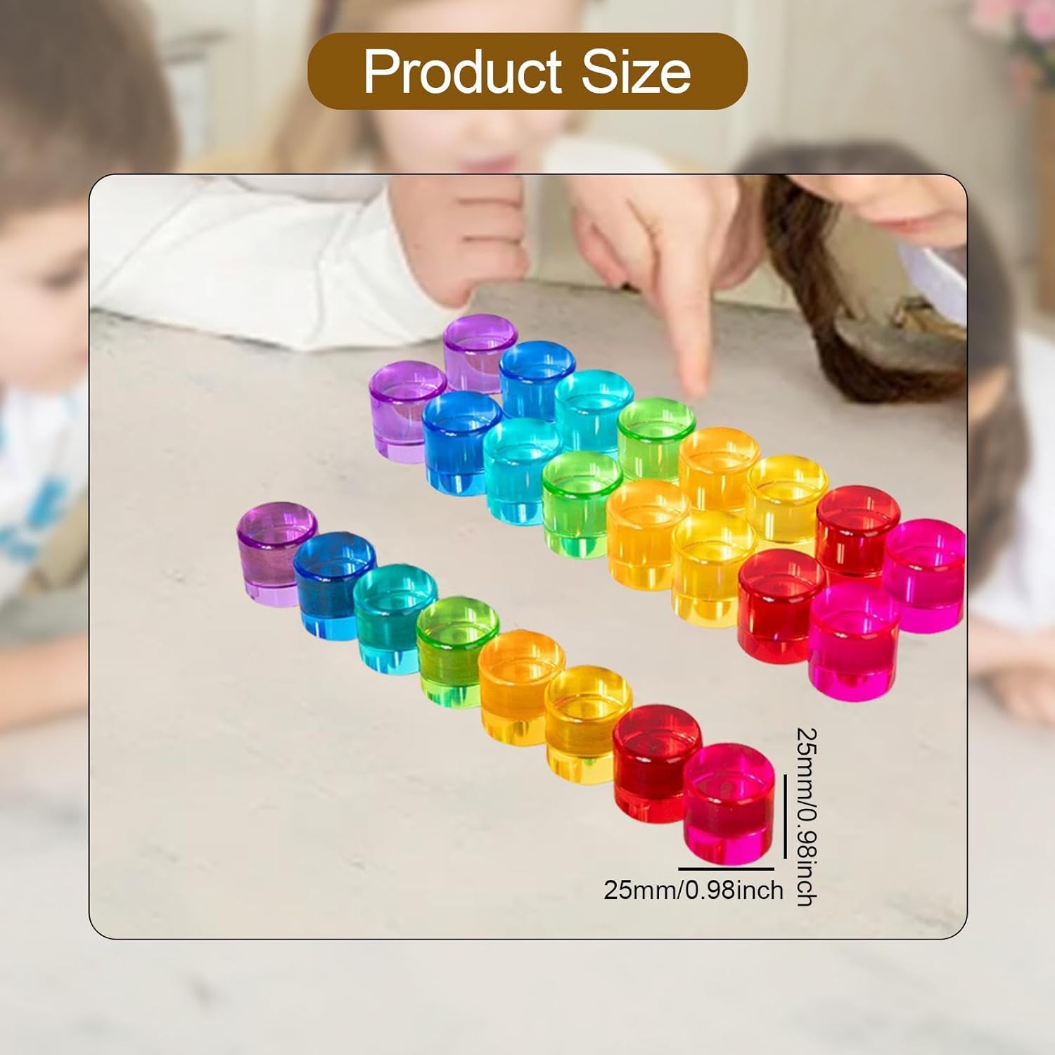 【Set completo e pratico】: riceverai un set completo di 24 blocchi, 3 per ciascuno degli 8 colori. Perfetto per le manine dei più piccoli. Il design compatto e leggero lo rende facile da riporre e trasportare, così puoi divertirti sempre e ovunque. 【Incoraggia il divertimento sociale e collaborativo】: Rainbow Stacker è perfetto sia per il gioco indipendente che per le attività di gruppo. Incoraggia l'interazione genitore-figlio e aiuta i bambini ad apprendere il lavoro di , la condivisione e le capacità comunicative mentre lavorano per dare vita alle loro idee. 【Creatività e immaginazione】: i blocchi impilabili in acrilico offrono infinite possibilità di gioco. I bambini possono impilarli, ordinarli e disporli liberamente per progettare i propri giochi colorati, costruire strutture fantasiose o creare modelli unici. 【Strumenti per l'apprendimento precoce】: Più di un semplice giocattolo, il gioco Rainbow Stacking è un potente strumento di apprendimento precoce. Il processo di costruzione e combinazione dei blocchi aiuta i bambini a sviluppare competenze chiave come il pensiero logico, la consapevolezza spaziale, la risoluzione dei problemi e il controllo motorio fine, gettando solide basi per comprensione dei concetti di matematica e geometria. 【Gioco】: I blocchi impilabili di gemme acriliche sono realizzati in acrilico altamente trasparente, ogni blocco vanta colori vivaci e una finitura . Quando la luce li attraversa, creano ombre meravigliose e colorate, catturando l'attenzione dei bambini e ispirando un fascino per la luce, il colore e l'esplorazione sensoriale. Sono perfetti per l'uso su un tavolo illuminato o vicino a una finestra soleggiata.