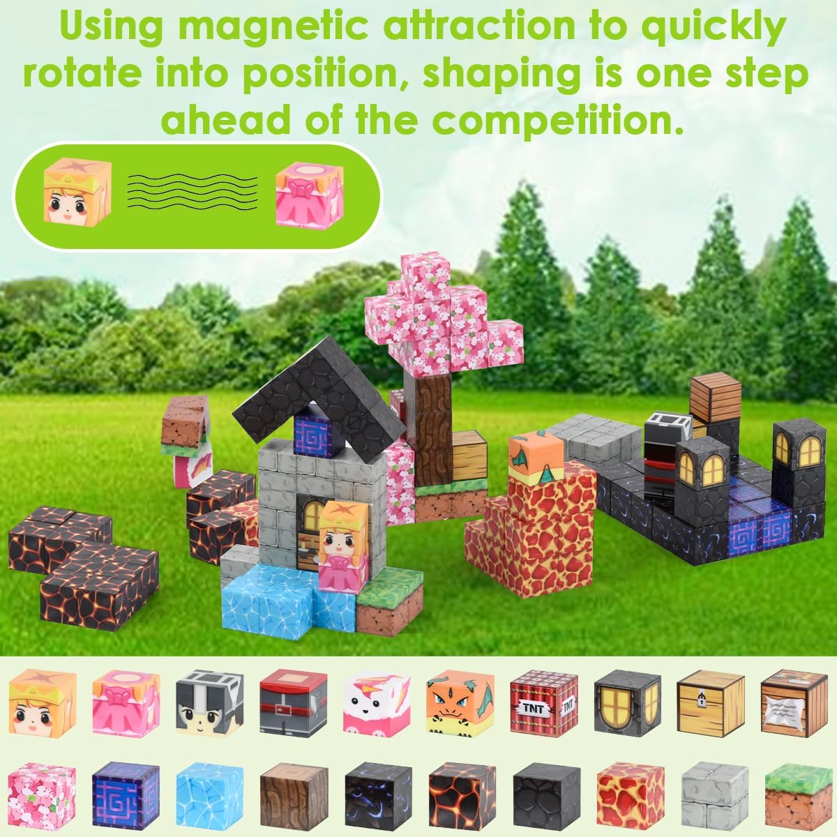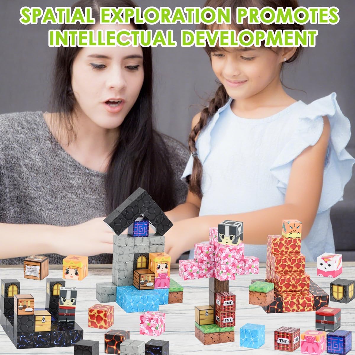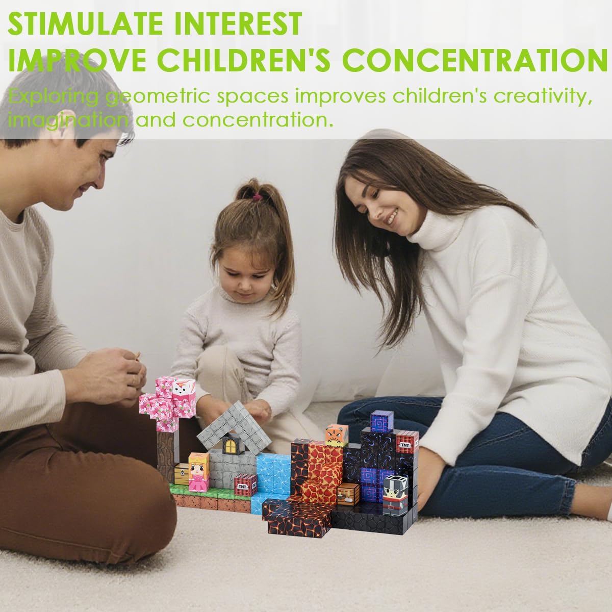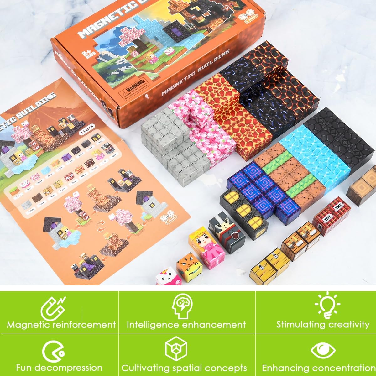 CONFEZIONE RICCA, STIMOLA LA CREATIVITÀ : Il set include 114 pezzi di magnetic building blocks / cubi magnetici in plastica ABS colorata, con la scena " Costruzioni Magnetiche Caverna / Mine Blocks ", che permette ai bambini di costruire liberamente e sviluppare immaginazione e creatività MATERIALE PLASTICO DI ALTA QUALITÀ E SICURO : Magnetic blocks / blocchi costruzioni magnetiche per bambini utilizza plastica ABS ecologica e non tossica, colorata e sicura, con dimensioni di circa 2.0 cm, bordi lisci e arrotondati, resistente e adatto a bambini dai 3 anni in su SVILUPPO MULTIPLO DELLE ABILITÀ : Costruendo e combinando blocchi magnetici per bambini / magnetic building block favorisce la coordinazione occhio-mano, la motricità fine, la percezione spaziale e il pensiero logico dei bambini, per un apprendimento divertente. ELEVATA COMPATIBILITÀ, VARIE POSSIBILITÀ DI GIOCO : Blocchi di Costruzioni Magnetiche per Bambini / Cubi magnetici per bambini è progettato con dimensioni standard compatibili con la maggior parte dei blocchi magnetici sul mercato, facilitando l’espansione e arricchendo il divertimento e l’interazione REGALO PERFETTO PER OGNI OCCASIONE : Magnetic building blocks ragazzo / giocattolo da costruzione per ragazze / mineblocks / cubi di costruzioni è ideale come regalo educativo per compleanni, festa dei bambini, Natale e altre occasioni, adatto a casa, scuola o asilo, supportando la crescita felice dei bambini