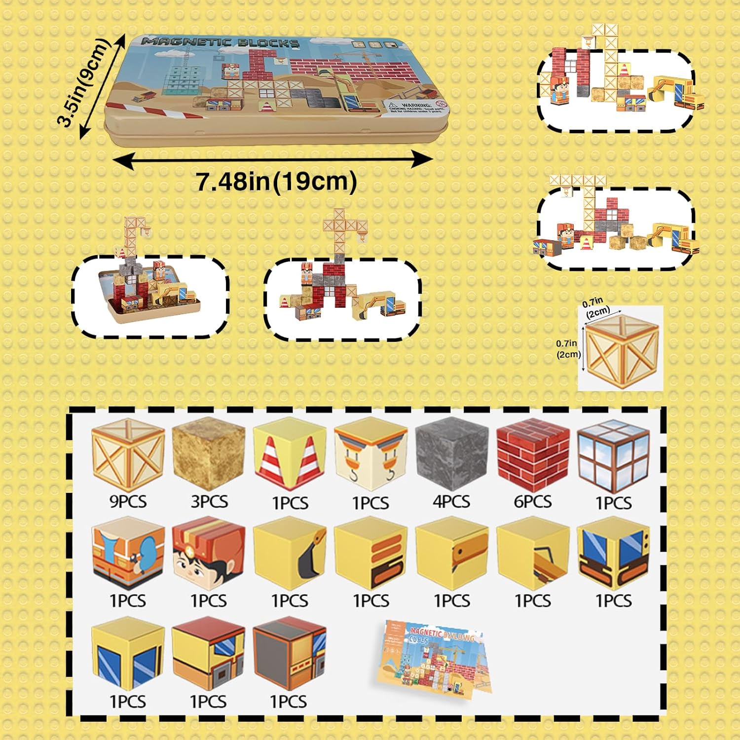 Vivace Blocchi Magnetici: La confezione contiene 36 blocchi magnetici, un manuale di istruzioni cartaceo e una scatola metallica per riporre i blocchi. I ricchi motivi sono adatti a bambini dai 3 anni in su, stimolando l'immaginazione e la creatività per costruire i propri mondi. Superba Maestria Artigianale: Realizzati in resistente plastica ABS con superfici lisce e bordi arrotondati. Ogni cubo di 2 x 2 x 2 cm è dotato di magneti integrati, che consentono combinazioni flessibili con altri giocattoli magnetici. Questo incoraggia creazioni uniche e fantasiose e favorisce il senso di realizzazione Gioco Creativo: costruire e assemblare blocchi magnetici favorisce la consapevolezza spaziale, le capacità motorie fini e la risoluzione creativa dei problemi, insegnando al contempo le relazioni di causa-effetto. I nostri blocchi magnetici introducono la geometria di base, l'architettura e le forme 3D, alimentando l'immaginazione, la creatività, il ragionamento spaziale e il pensiero logico, migliorando al contempo il legame genitore-figlio Gioco Creativo: costruire e assemblare blocchi magnetici favorisce la consapevolezza spaziale, le capacità motorie fini e la risoluzione creativa dei problemi, insegnando al contempo le relazioni di causa-effetto. I nostri blocchi magnetici introducono la geometria di base, l'architettura e le forme 3D, alimentando l'immaginazione, la creatività, il ragionamento spaziale e il pensiero logico, migliorando al contempo il legame genitore-figlio Service Exclusif : Si vous n'êtes pas satisfait du produit que vous avez reçu, veuillez nous envoyer un e-mail et nous vous proposerons une solution satisfaisante