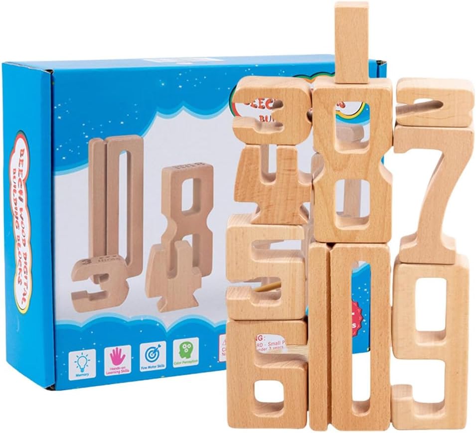 Blocchi numerici in legno | Giocattolo matematico interattivo Gioco di impilamento di blocchi costruzione numeri in legno costruzione digitali